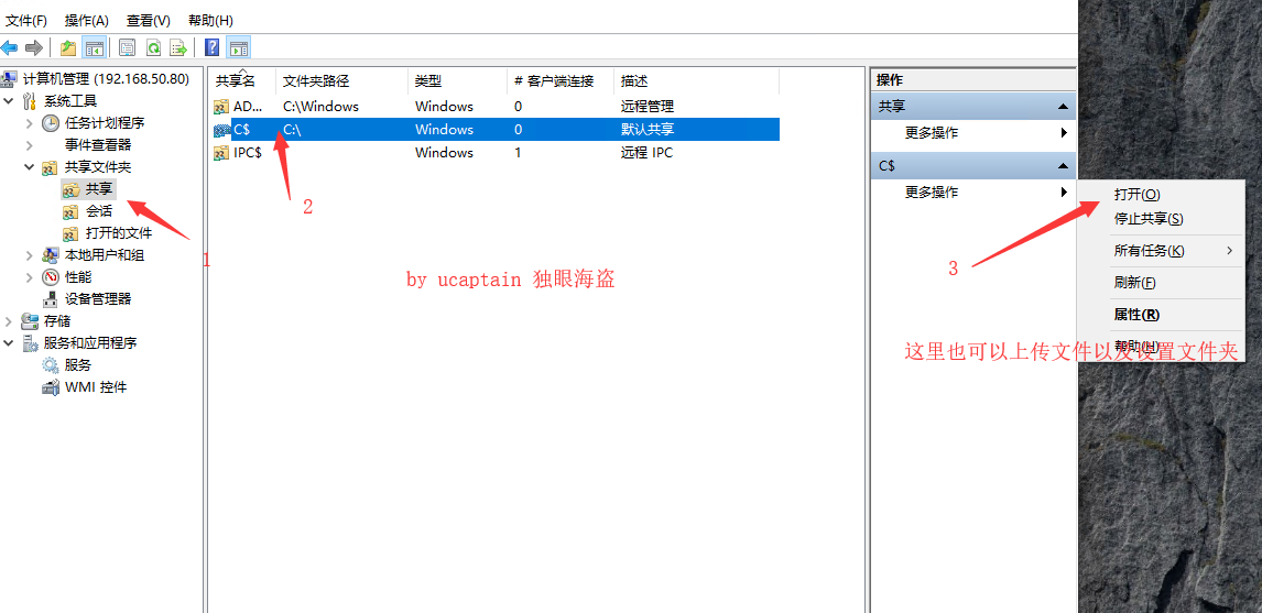 经过上一步打开服务端的C盘, 可以设置文件夹以及拖拽文件以便上传下载。