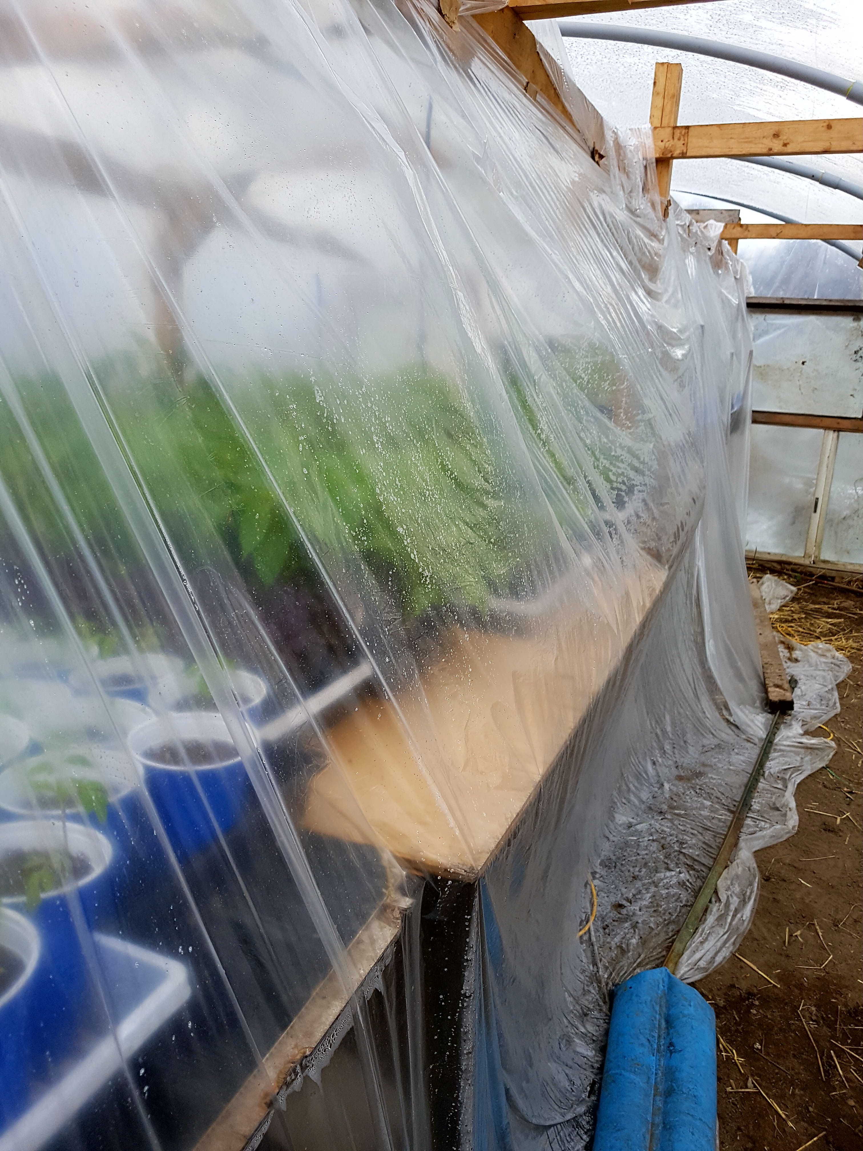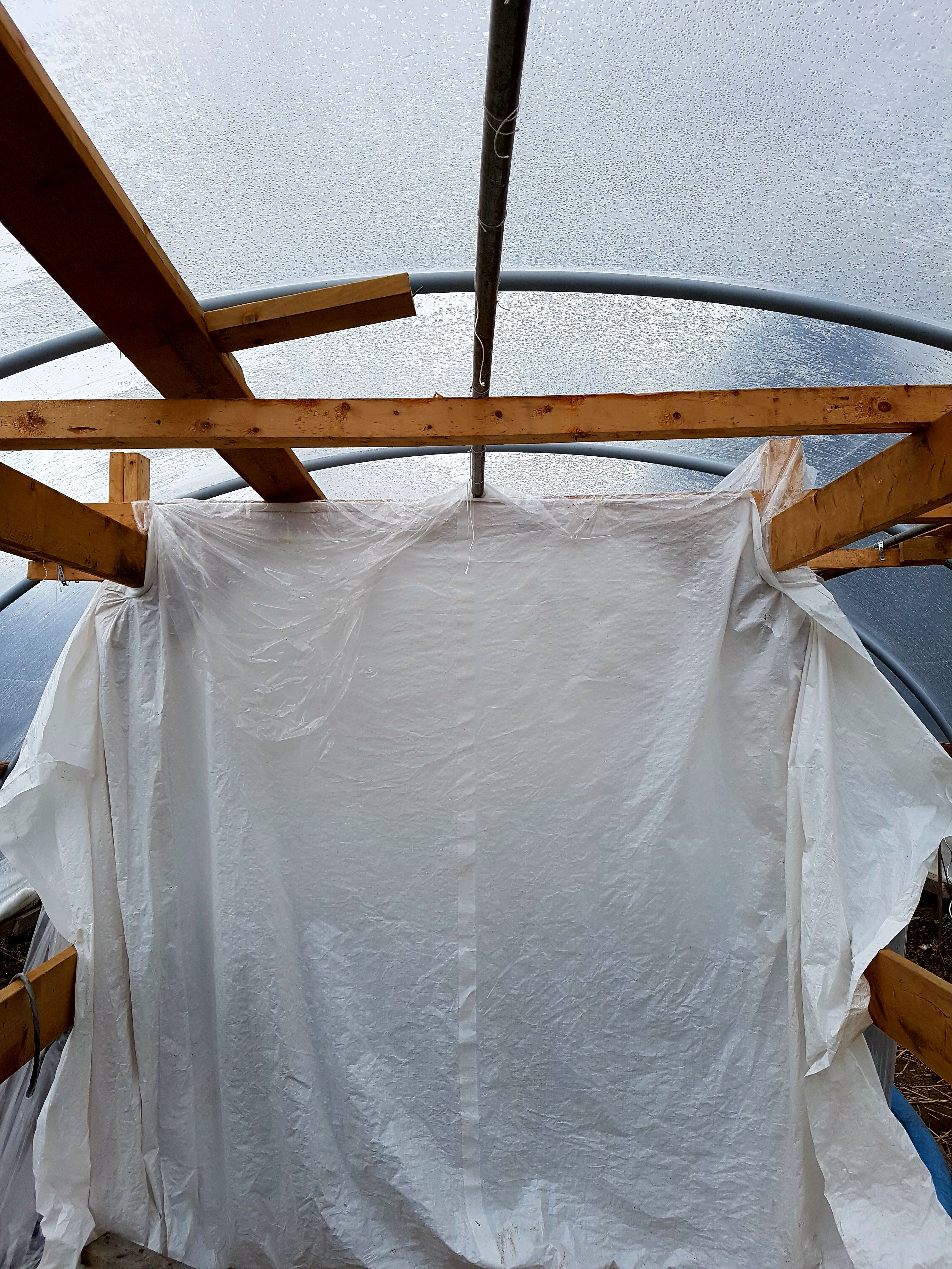 This tarp is acting like a door to my mini greenhouse, nothing fancy about this but it works!