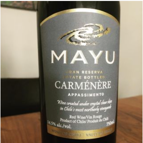 Quite rare to enjoy a Chilean wine made Appassimento style from Carmenere grapes. The Mayu Gran Reserva 2017 offers aromas of black plum, mission fig, green peppercorn, slate, caramel and sweet tobacco. A full body, fresh acidity and gentle tannins give this wine a rich taste. The finish is round and mellow, providing easy drinkability. Palate: cherry, plum, leather, white pepper, chocolate, caramel and tobacco. Enjoy!