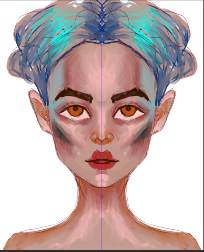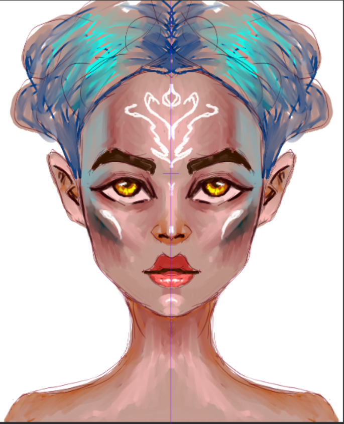 drawing processartcloud (64)in #wip • 3 years ago before i finished the pupil of the eye and now i finished the surrounding area of the eye. i am adding some white design to the drawing. and fixing the hair and also using some really dark colors to really define the cheek bone