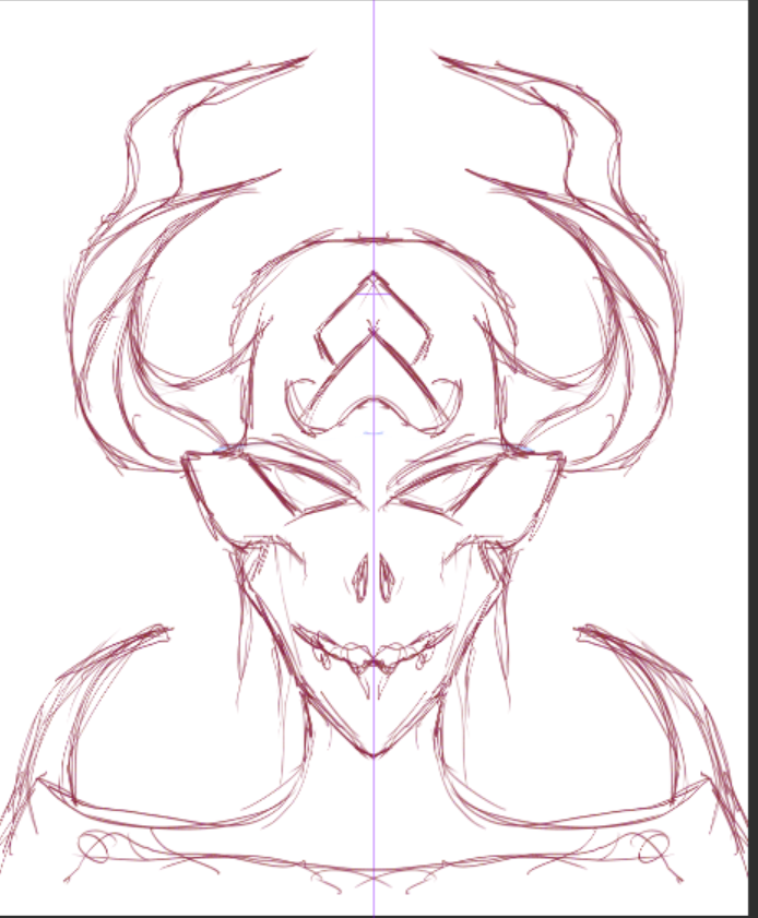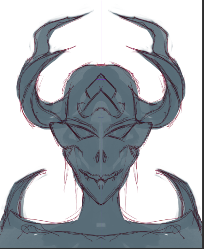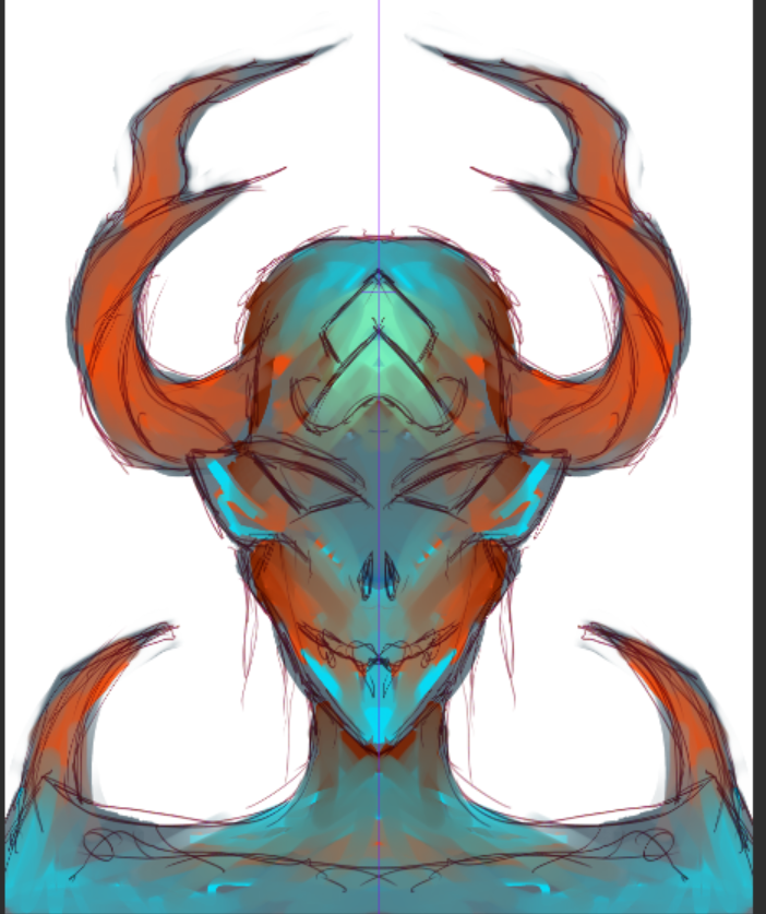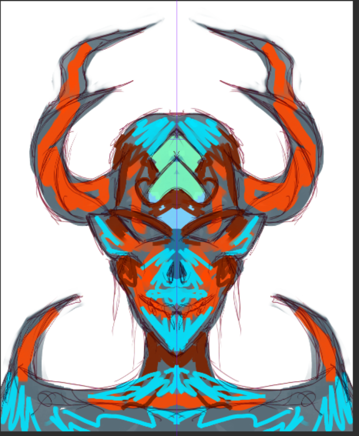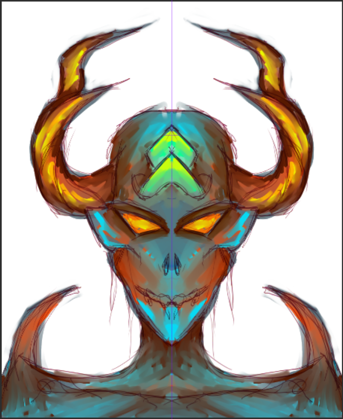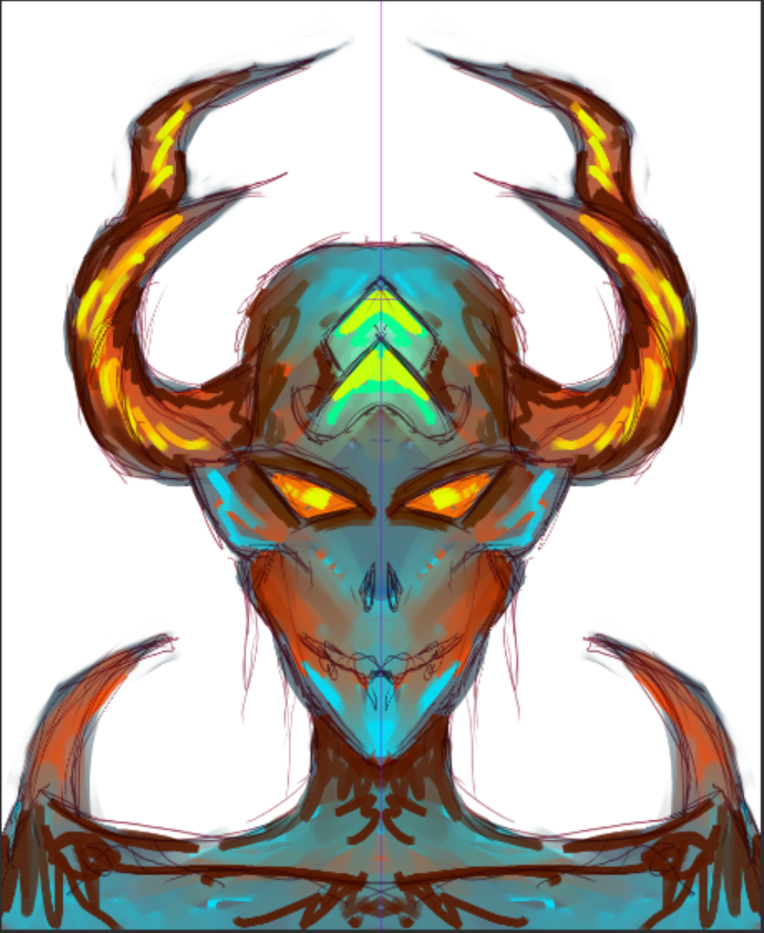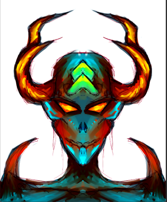 i am changing the colors of the drawing to make it more and more dark. because before it was very light hearted and a devil shouldn't look like that, i am using a green palette now instead of red, so thats new too