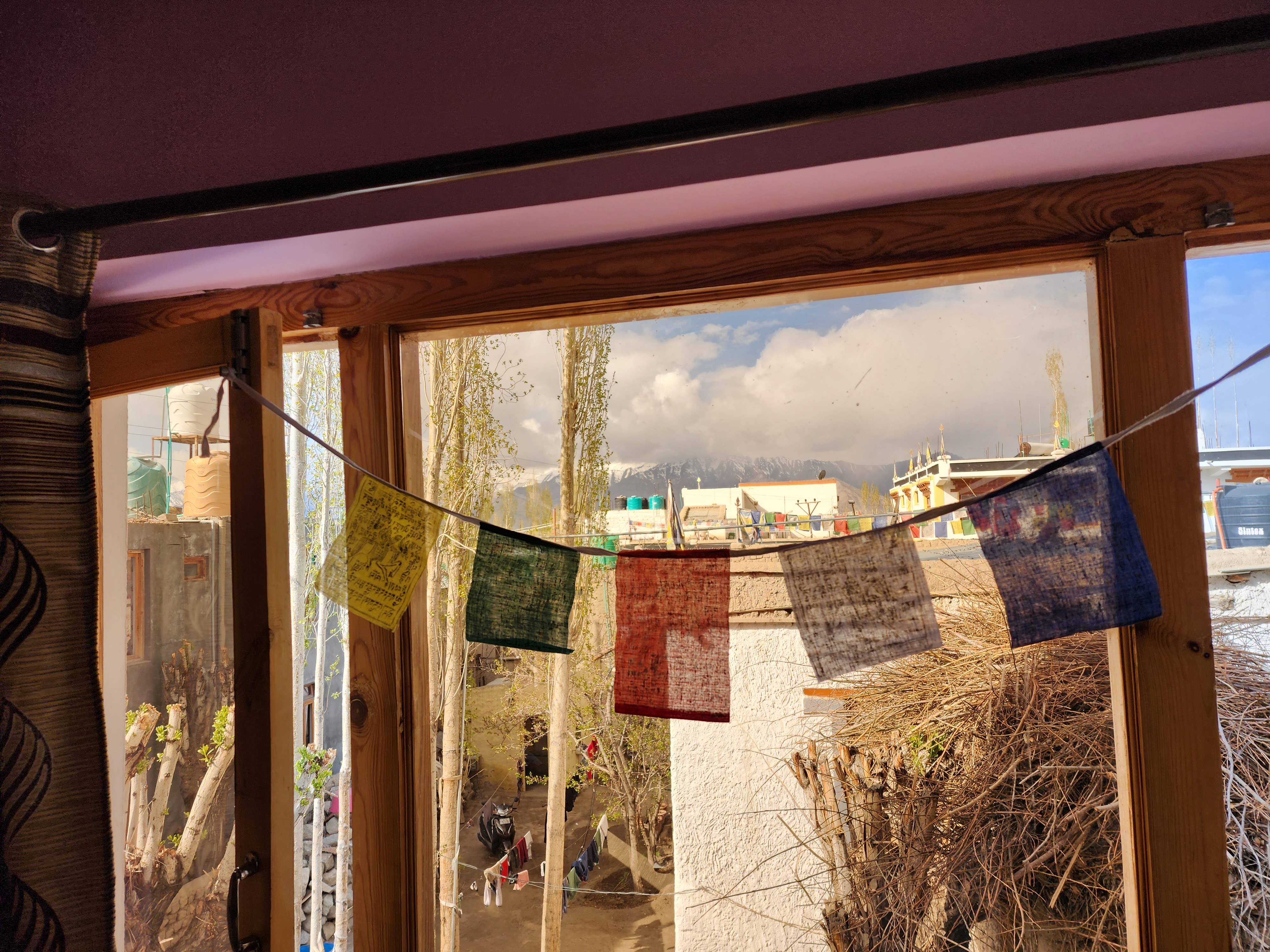 꼼꼼하고 아기자기하게 준비된 아이템들 중에서 가장 눈에 띈 것은 룽타이다. 얼른 집어 들어 양쪽 창문 경첩에 걸고 고도의 향기를 뿌려주었다. 창문을 살짝 열어두니 히말라야의 정기가 바람을 만들었고 그 바람이 펄럭이는 앞집 룽타의 율동에 맞추어 내방의 룽타로 이어 달리기를 한다. 이제는 고도의 향기가 기수가 되어 나의 몸과 정신을 정화해 주겠지. 14일간의 라다크 여정이 기대된다.