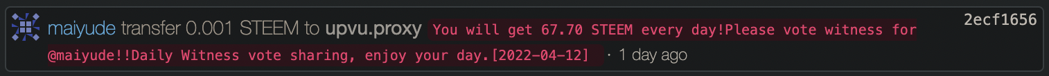 @upvu.proxy didn't Daily witness vote sharing from you(@maiyude)