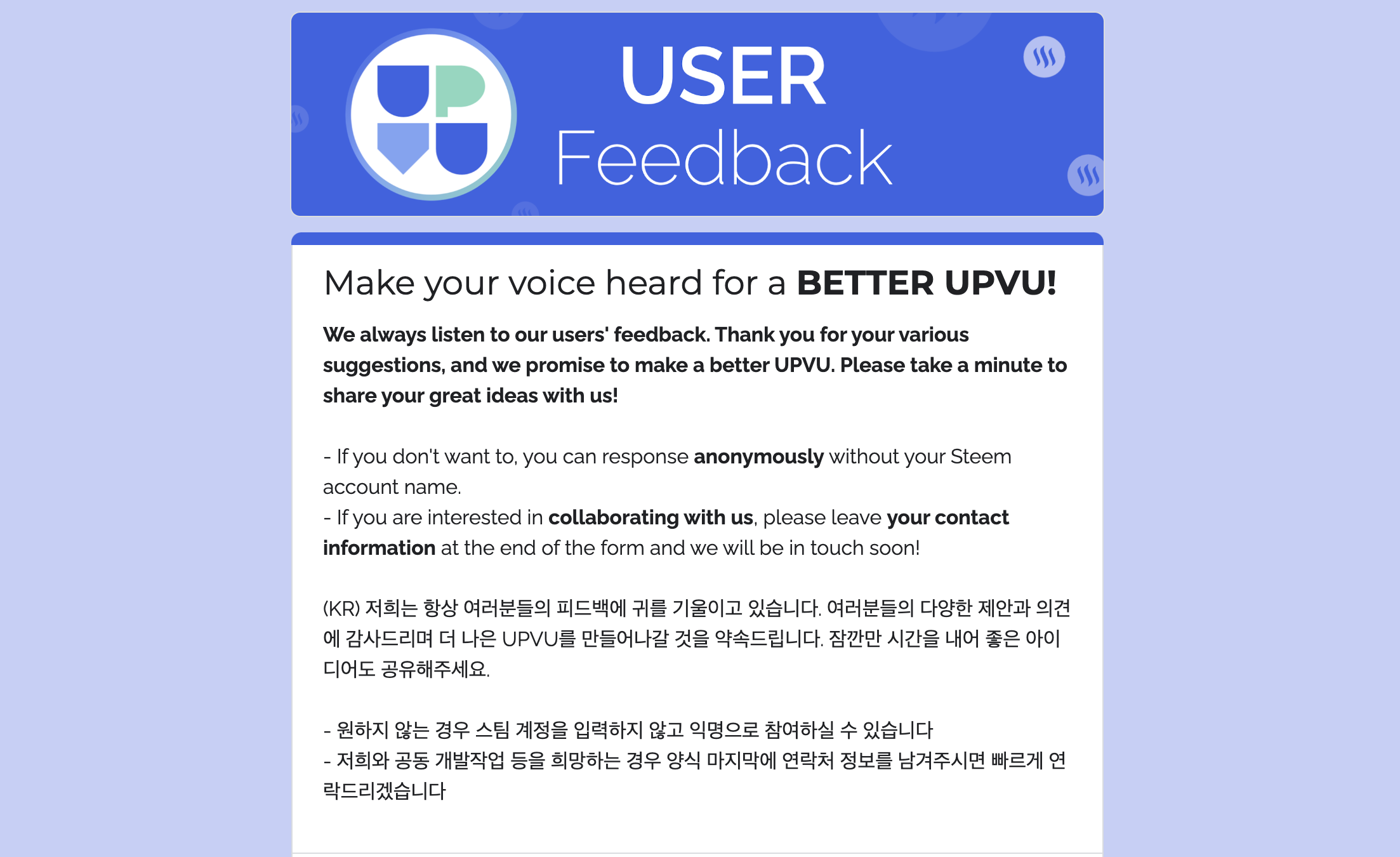 We released UPVU 2.0, the new web interface for Steem on December 2, 2022. We continue to aim to significantly improve the Steemian user experience with our platform, and you can check out our new updates in our Development Progress Report.