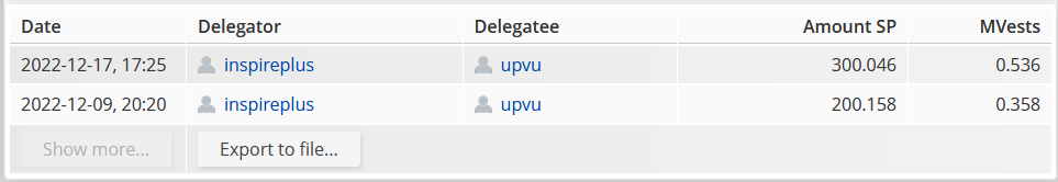 If the number of delegates is very small compared to @upvu's total Steem Power and processed in decimal units, vp may not change if the delegated quantity of other accounts increases. 300sp is only 0.0009% of the total sp delegated to upvu. (Steem blockchain only supports 3 decimal places, you are rather rounded)