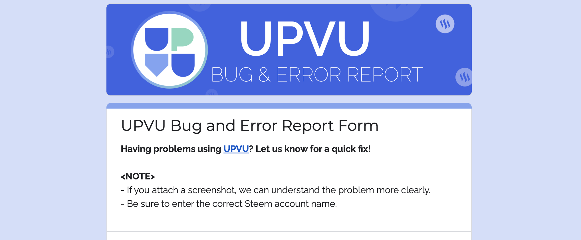 We collect your Email address and Steem account name to inform you if the issue has been resolved. The collected Email address will never be used for any other purpose and will be disposed of as soon as the problem is resolved.