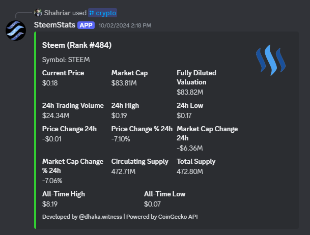 Our recent work on Discord Multifunctional Bot "SteemStats" is on the way and we have completed up to 6 features and trying to add all possible features that are available and useful for the users.