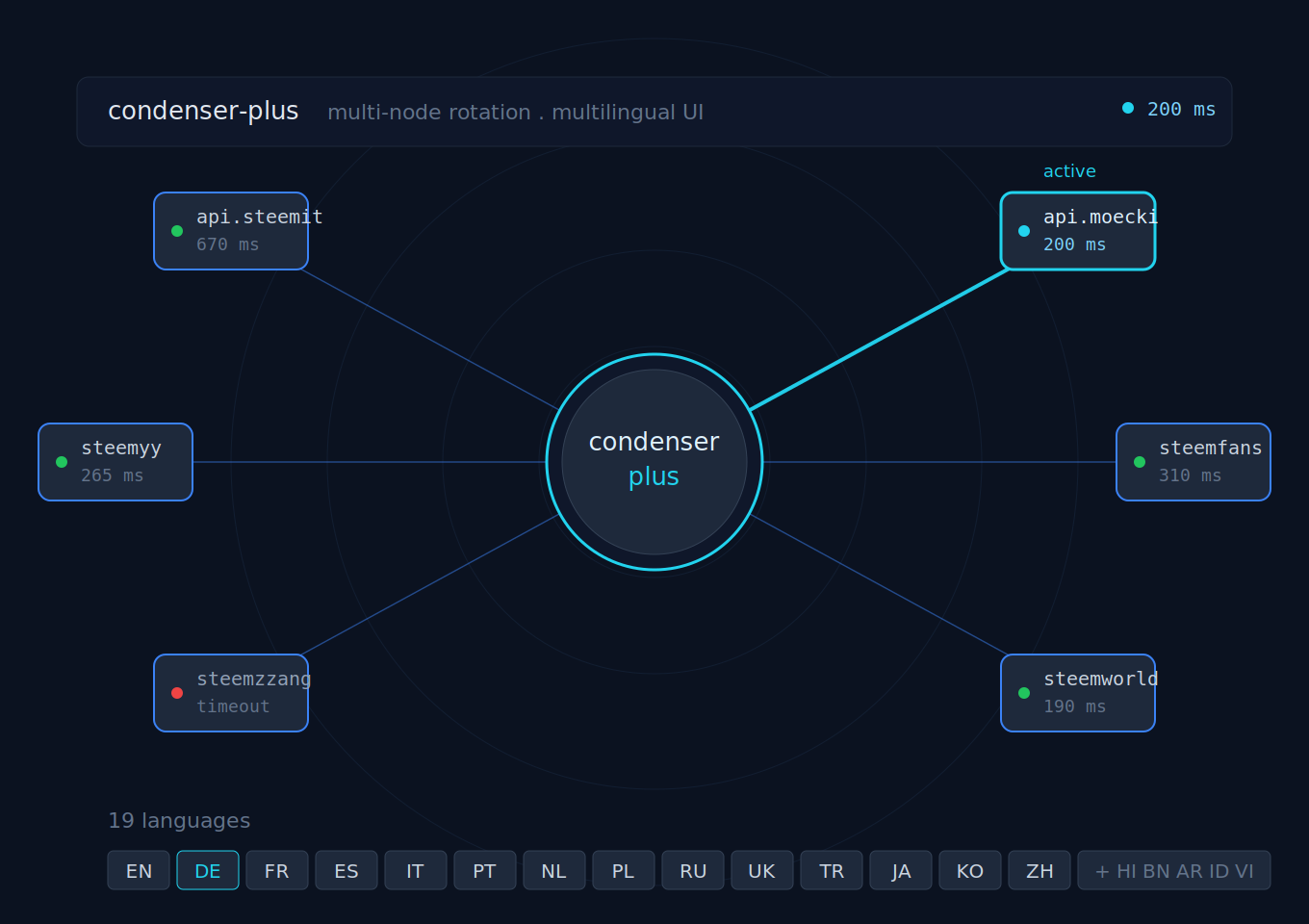 condenser-plus: Multi-Node API-Rotation und mehrsprachige Oberfläche für das klassische Steemit-Frontend
