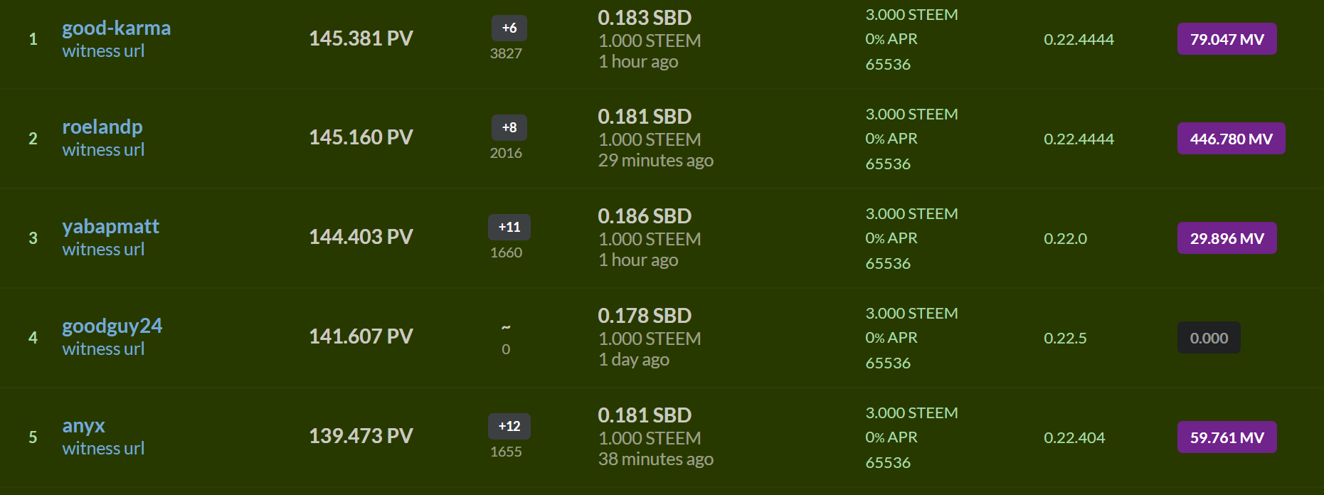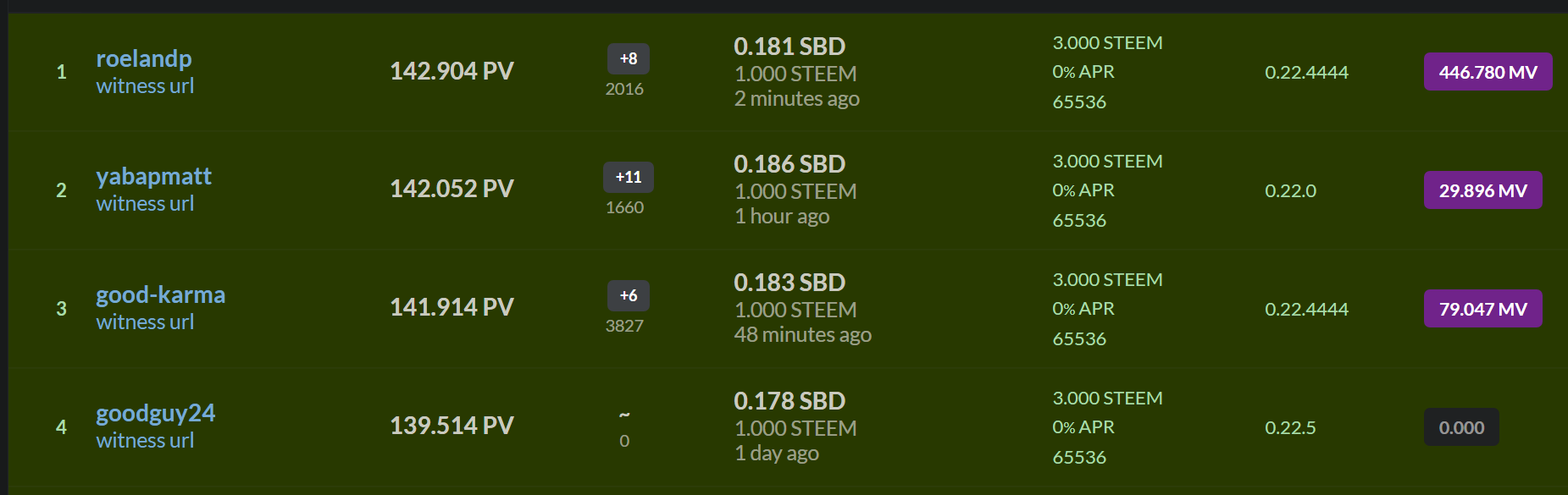 We need approx 16 million steem to push at least 4 witnesses into the top 20