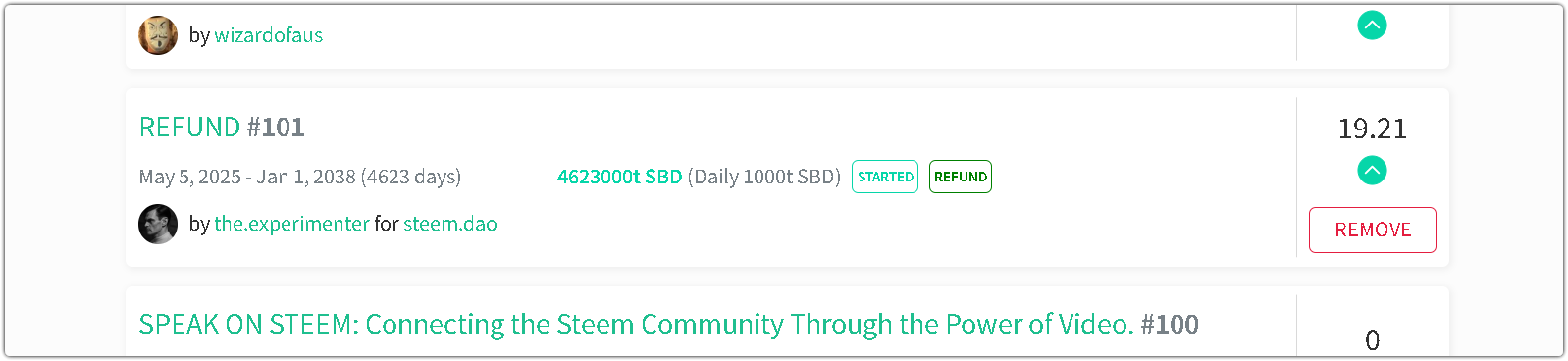 Users can now remove their own proposals with just two clicks. The "Remove" button is only visible when the currently logged-in account matches the creator of the proposal. However, during testing, an incident occurred where a proposal was accidentally removed due to an unintended click. This presents a significant risk, particularly for proposals that have already received substantial support, as regaining the same level of backing can be difficult or even impossible due to factors such as user engagement and overall visibility.