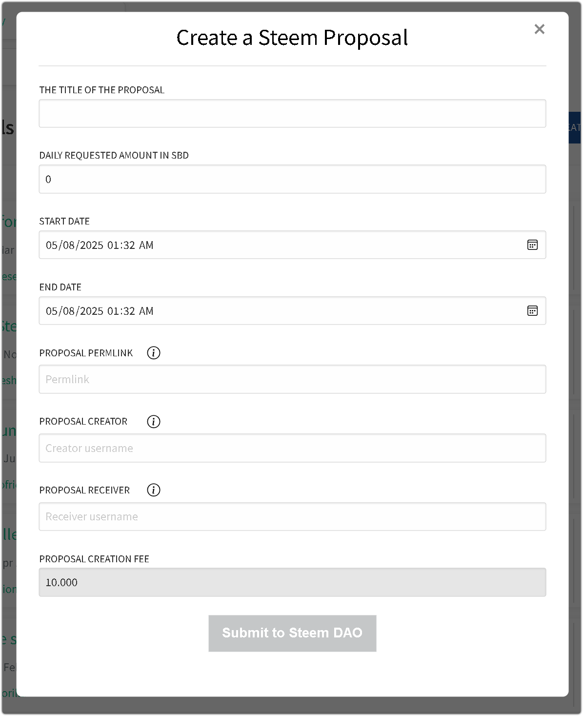 To facilitate interaction with the system, Steemit Inc. introduced a basic interface at https://steemitwallet.com/proposals, which served as a minimum viable product. This page was intended to be a starting point that community developers could expand over time. Unfortunately, despite being introduced more than six years ago, the interface received little to no enhancement, limiting its functionality and usability for end users.