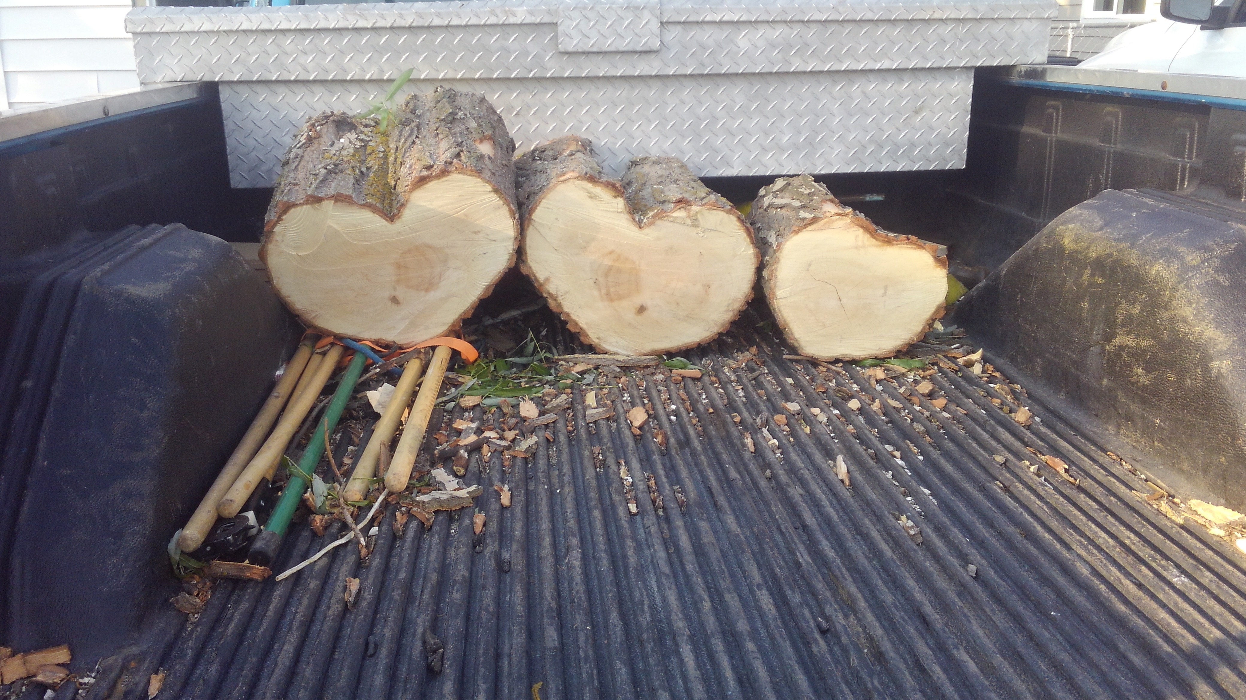 Heart Cutbigdbtc (25)in #wood • 8 years ago Helping a friend fall some wayward trees, we stumbled upon these oddly sweet cuts. I'm planning on drying them over the summer and after a sanding see what we get