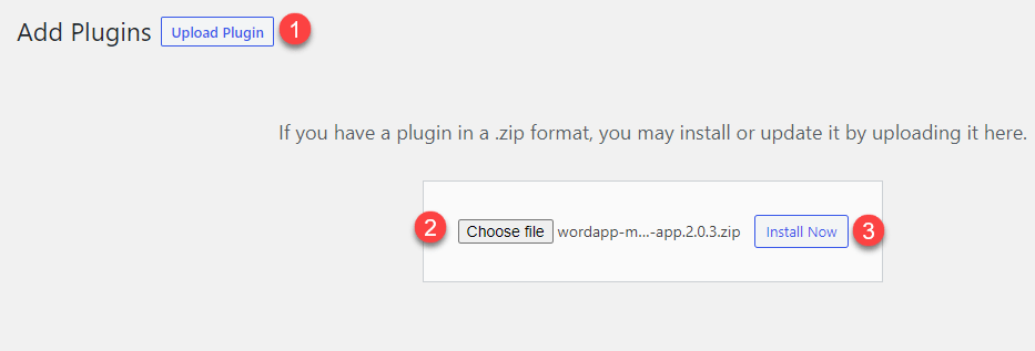 Now click on the Upload Plugin button and click on the Choose file button and open the downloaded plugin file and finally click on the Install Now button.