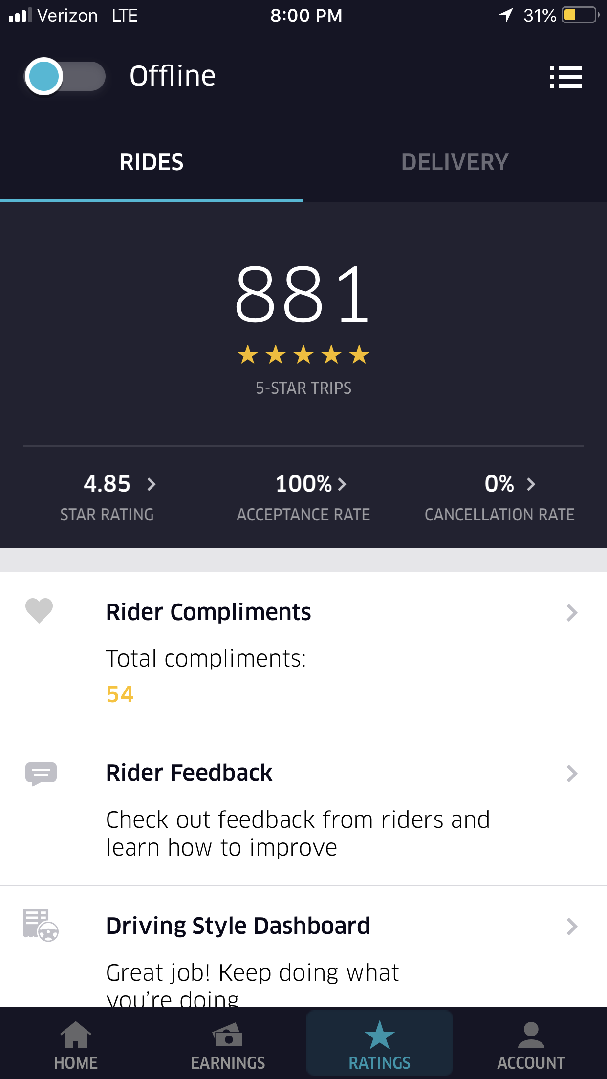 Woahh!! You are doing great as an uber driver