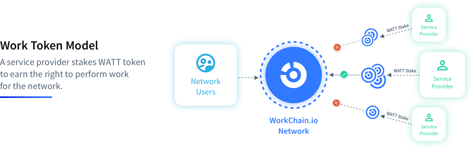 Staking is the primary use for WATT Tokens, enabling different participants access to the network and to perform more work on WorkChain.io based on the size of the stake.