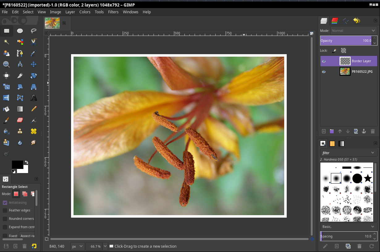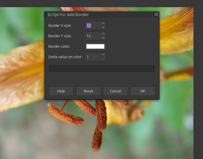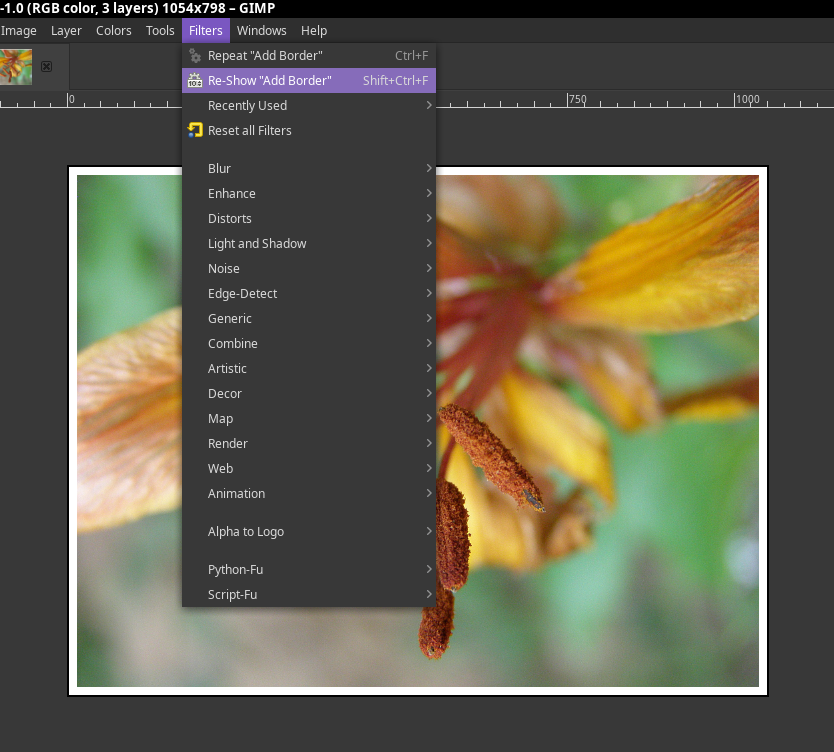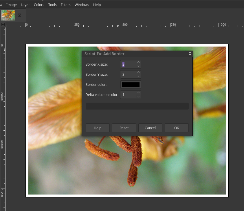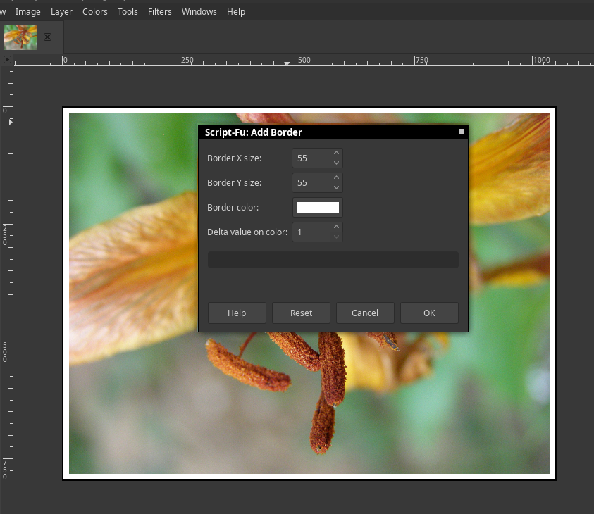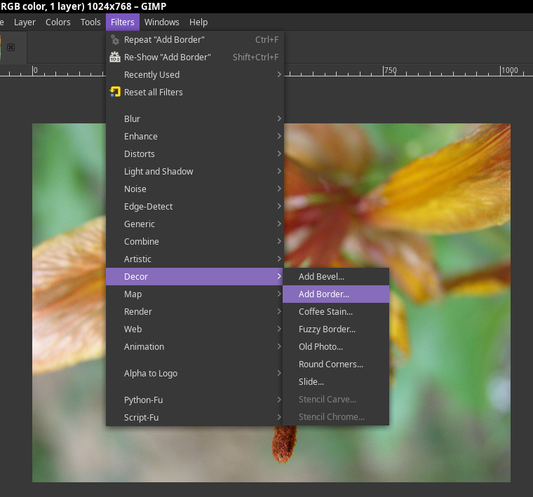 - Clic in menu | Filters->Decor->Add Border...
