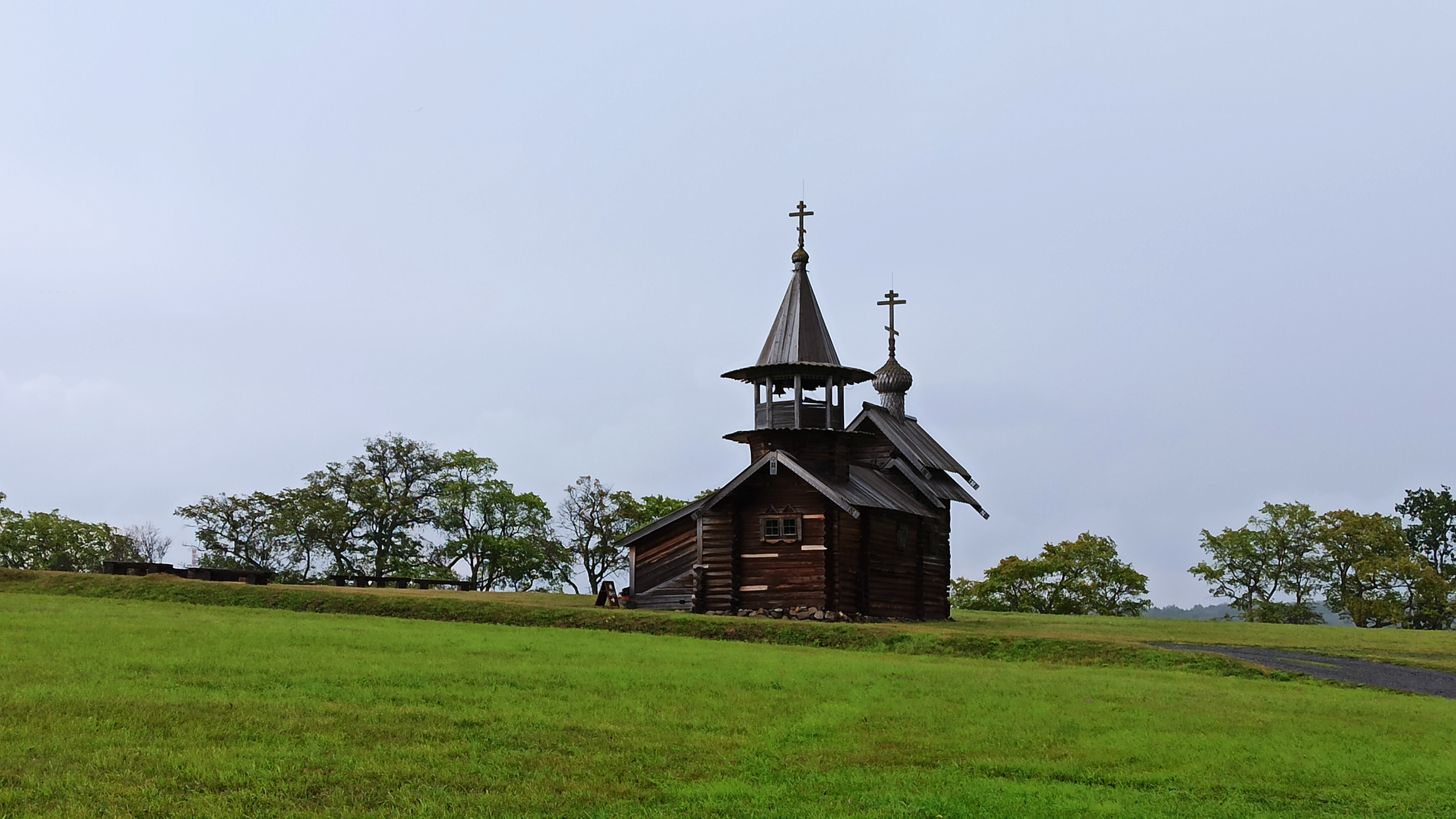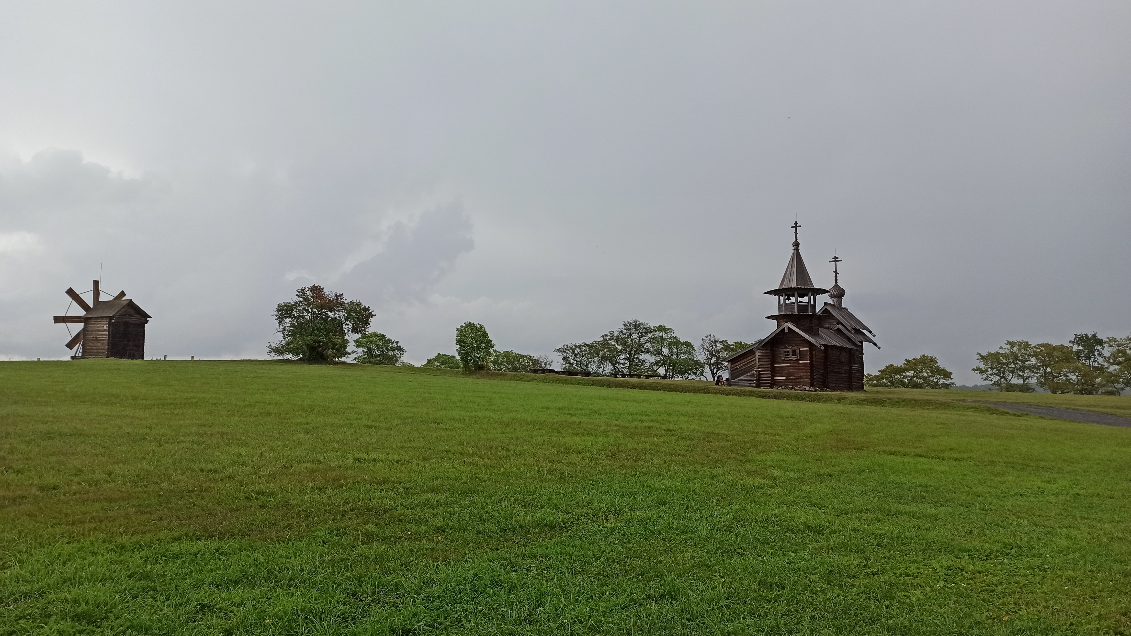 А в Кижах бегом под дождём.
