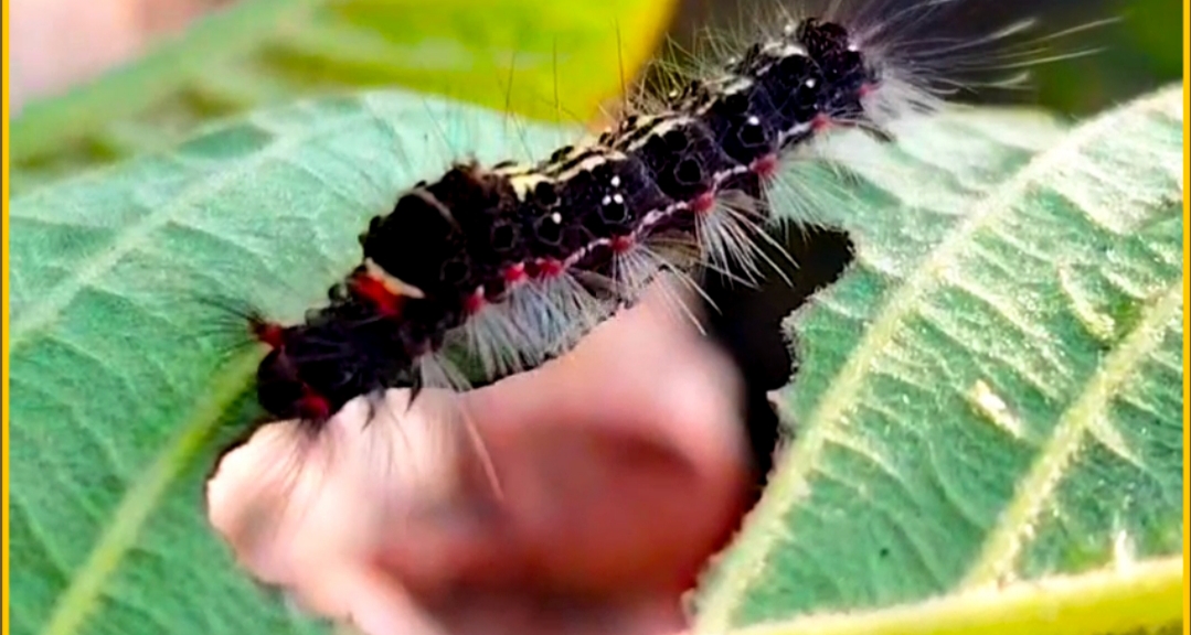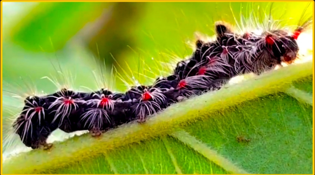 I saw this Caterpillar walking very beautifully on the leaves of a jackfruit tree on the side of the road and I took some beautiful pictures and videos of this Caterpillar in this state. Which looked very beautiful. It looked much more beautiful with my own eyes from the pictures of this Caterpillar, until today.
