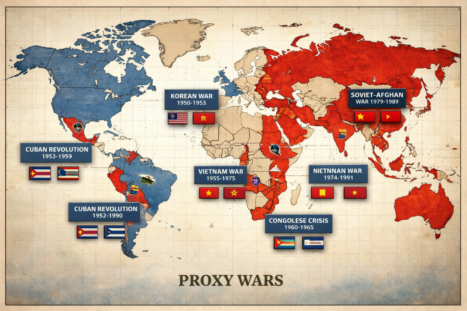 👉 These are known as proxy wars, where larger powers influence smaller conflicts.