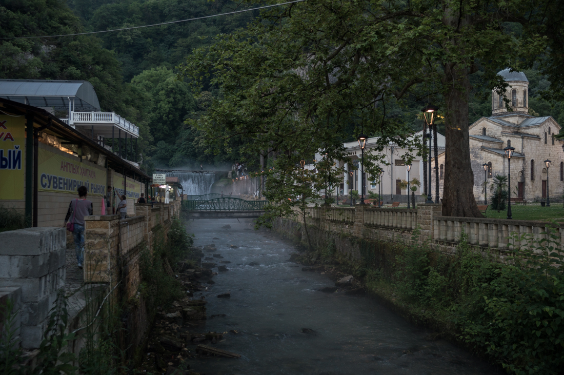 In the first photo you see the temple of Simon Canonite. According to legend, this is one of the apostles of Jesus Christ. Not far from this place, he died from the sword of a Roman legionnaire. Upstream of the Psyrtskha River (it is in the photo below) there is a place of execution, and even higher - a cave where this man lived.