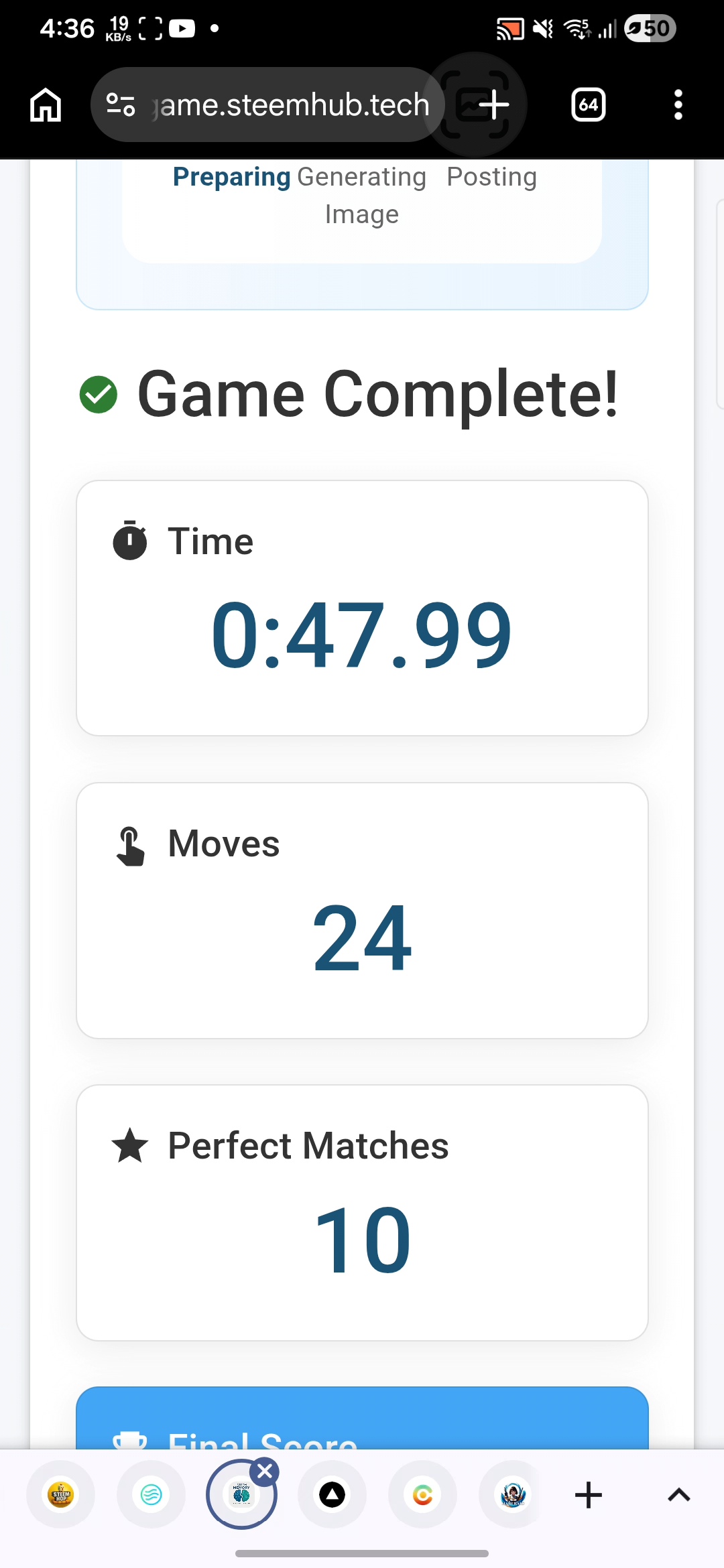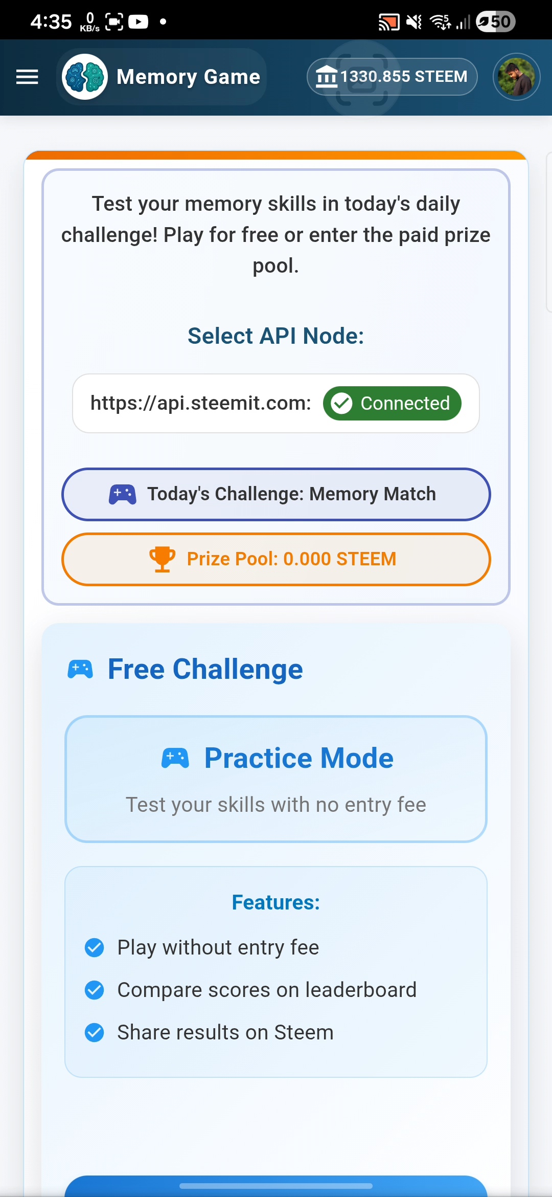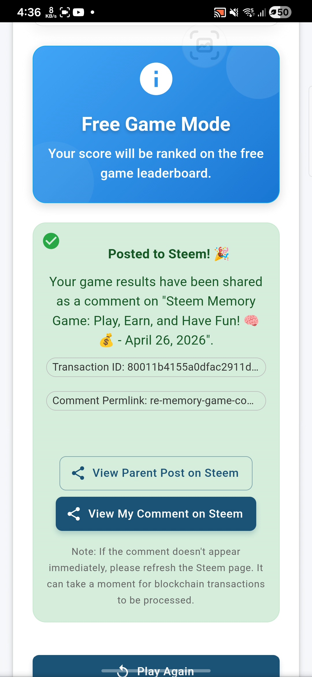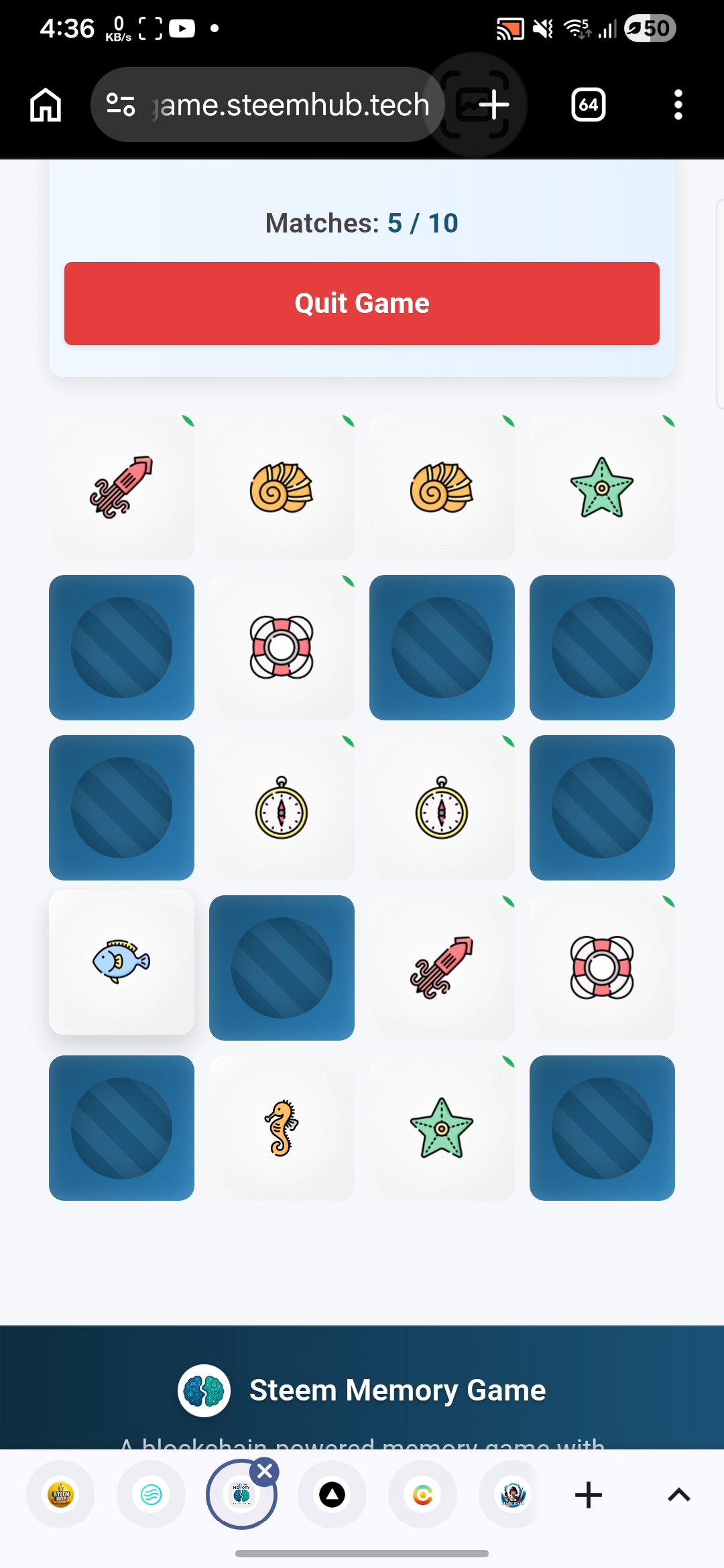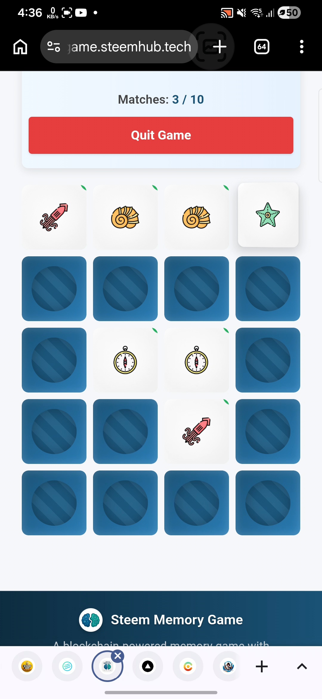 Jugando al juego de memoria de Steem. Lunes, 27 de abril de 2026.