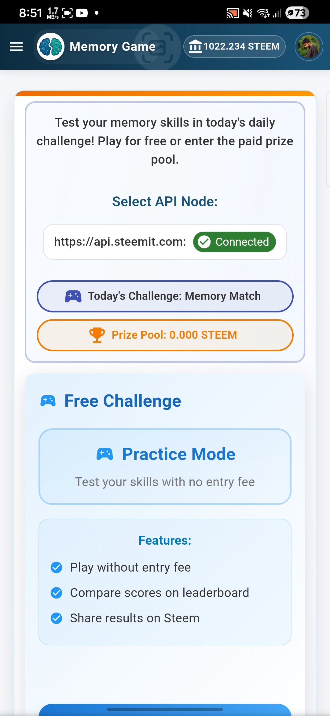 Jugando al juego de memoria de Steem. Miércoles, 22 de abril de 2026.
