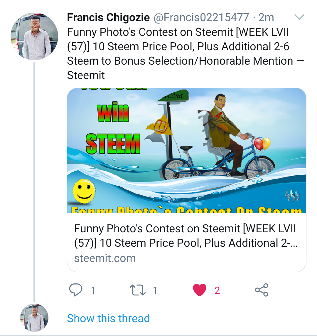 5. You must share this post on other platform and upload the screenshot as a proof, NB: you are not to share on paid blog, you can share directly to Facebook or Twitter etc. but not on paid blog; we are doing this to promote Steem token and Steemit Platform, also, to increase the number of viewers.