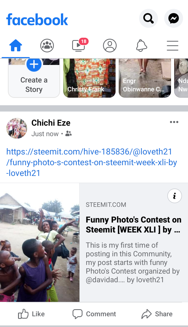 Chichi Eze was the one sharing your own entry on her Facebook page? 😀