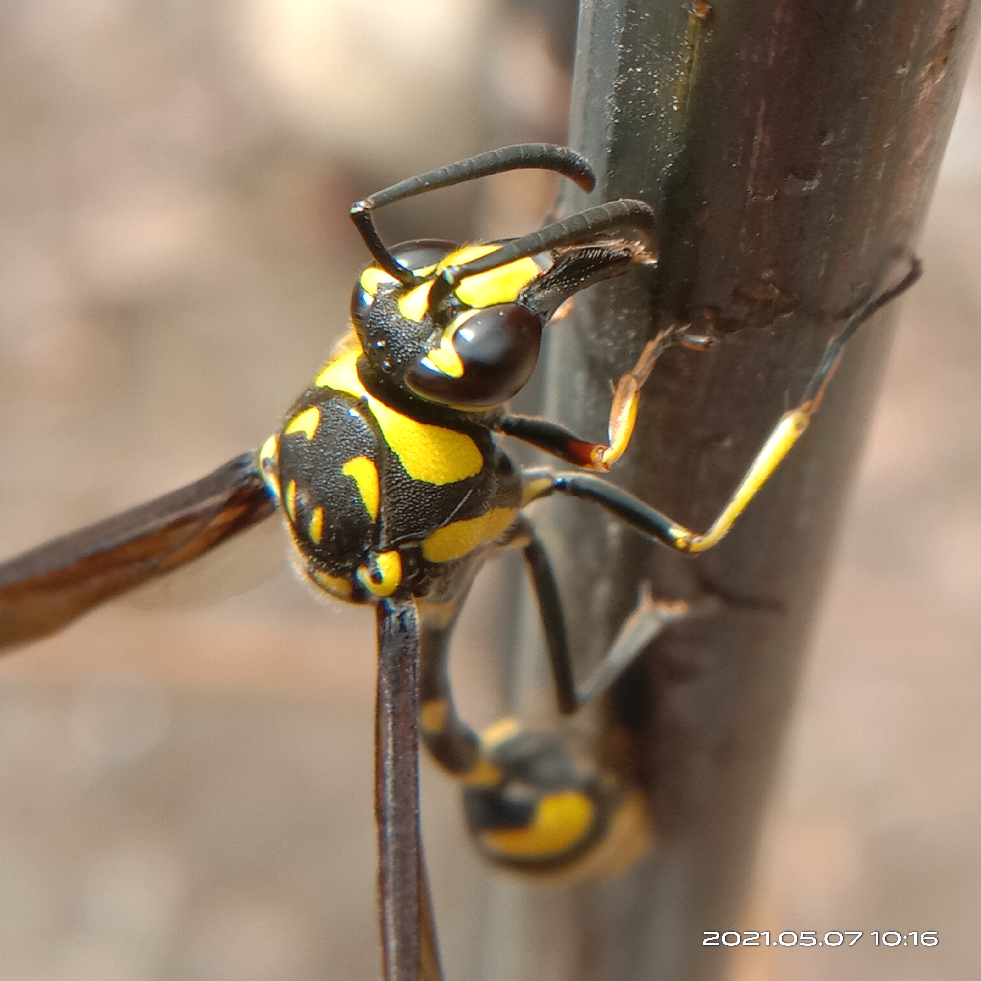 This wasp pair has a very beautiful appearance when seen, because this wasp has a black color with several yellow hues on the wasp's body.