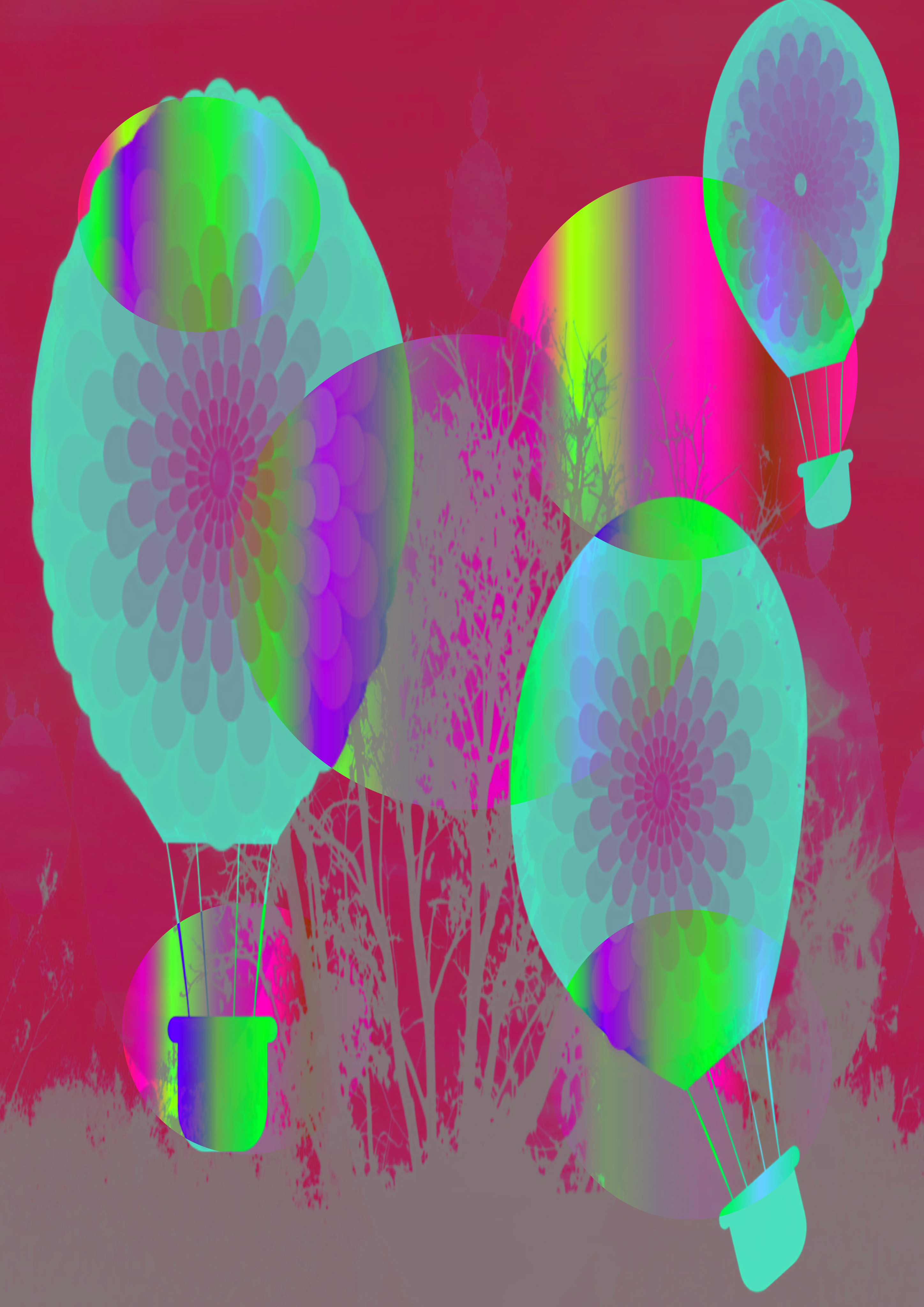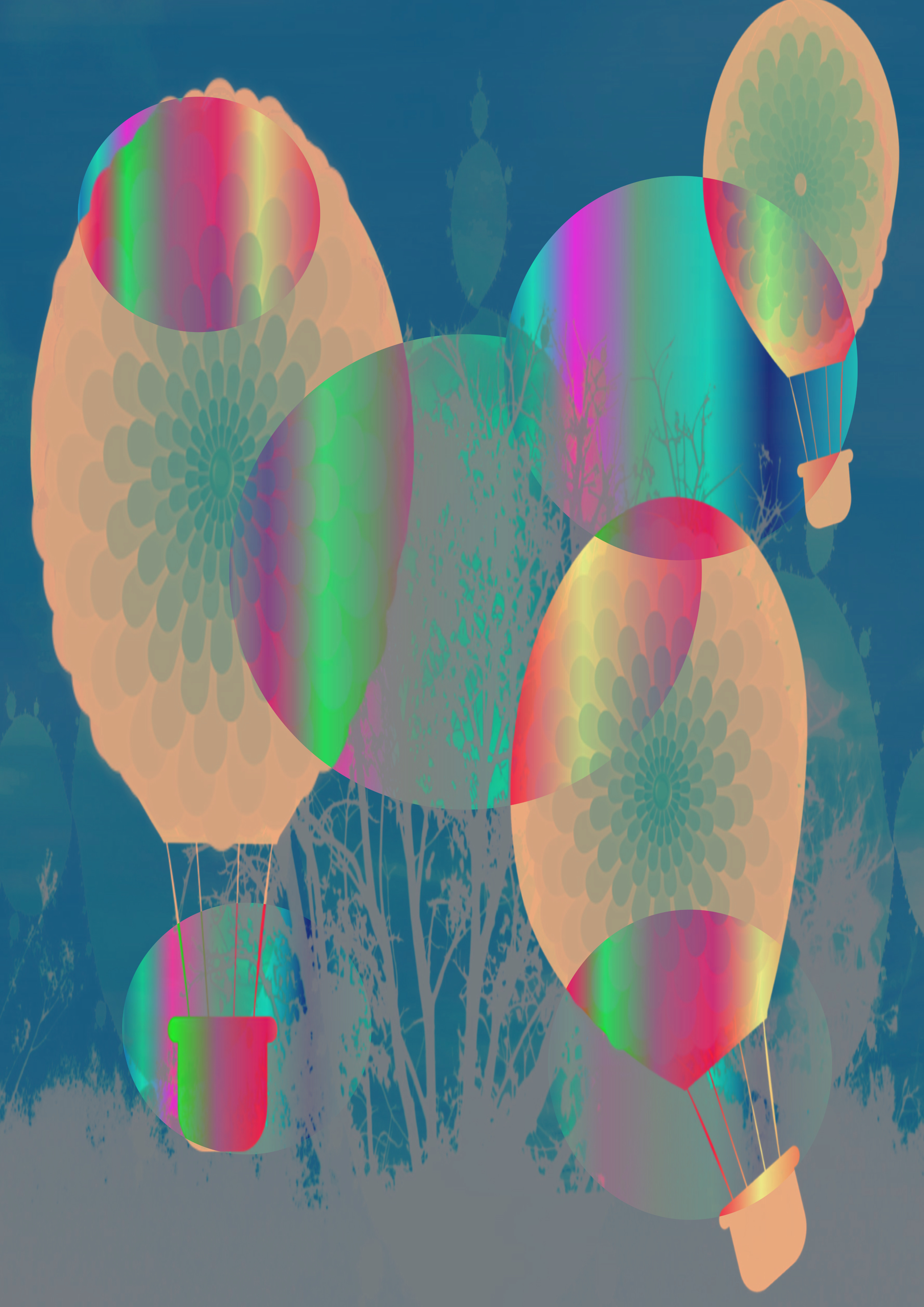 Layered the final balloons, with a photo of a tree and other effects.