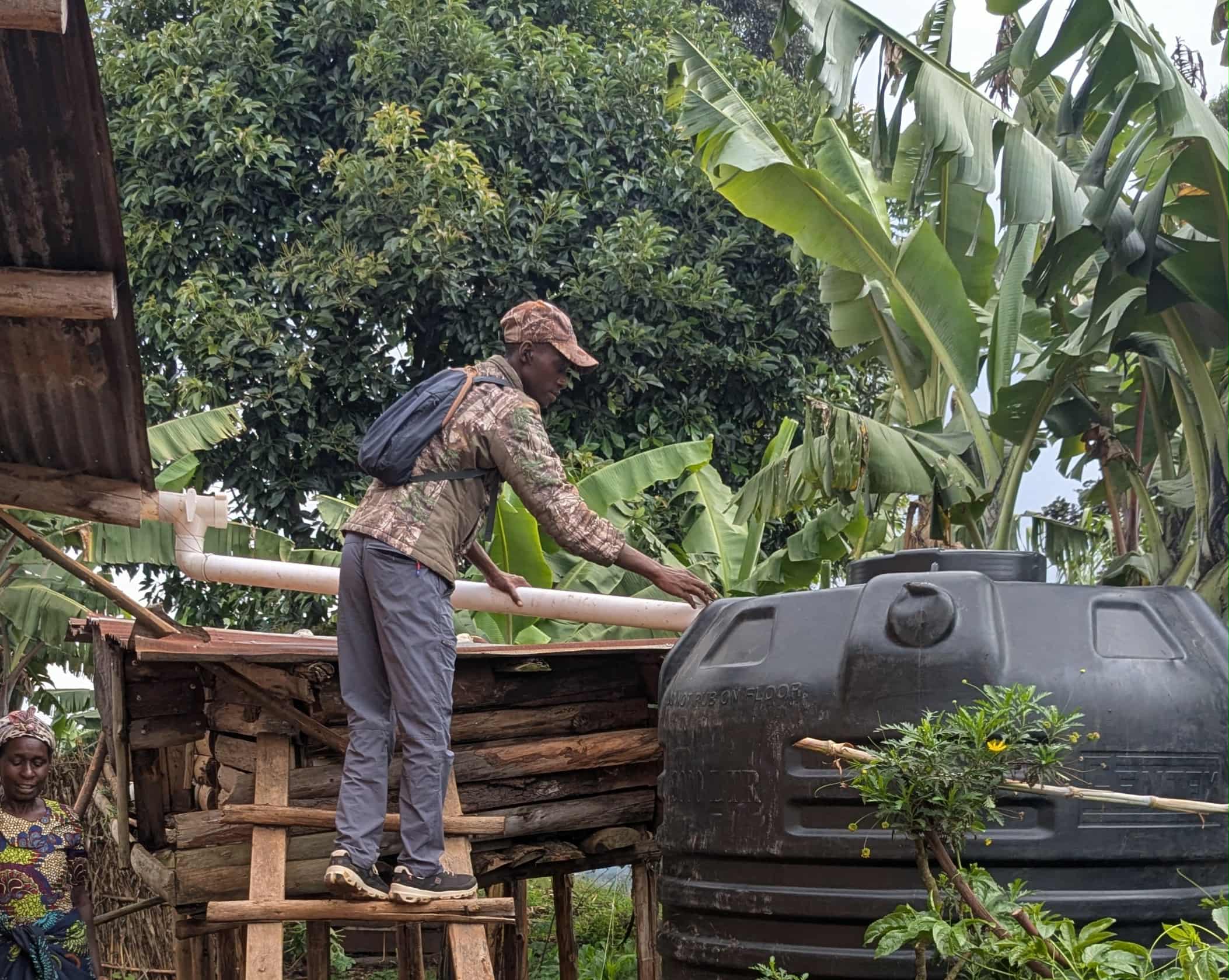 Letzten Monat bekam Hillary, der ein Tourführer in Uganda ist, von einer Touristin das Geld für den 3000-Liter Wassertank geschenkt.