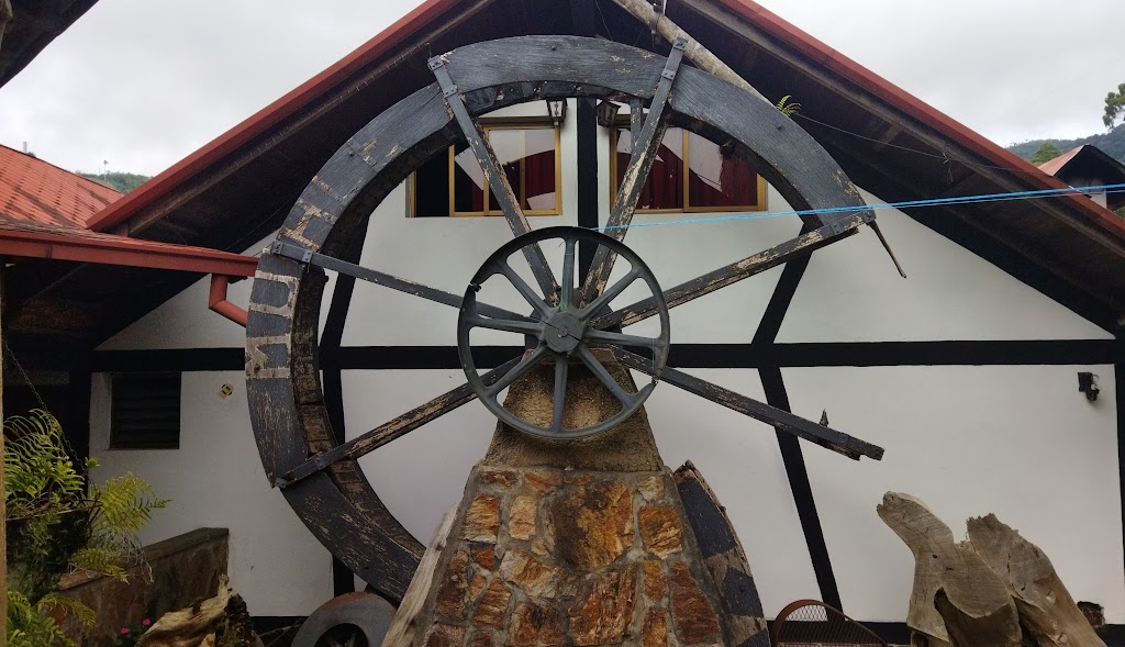 Esta rueda pertenece a un molino de agua que sirvio para transformar la energía del agua para moler granos en la época de inicio de la Colonia Tovar.