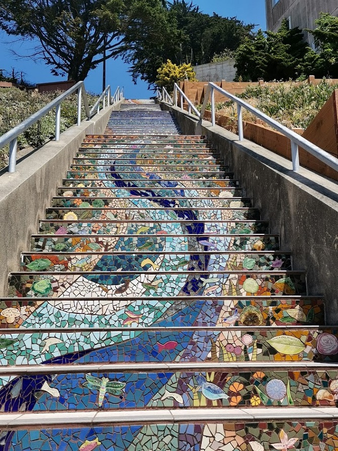 The 16th Avenue Tiled Step in San Francisco, Golden Gate Heights Neighborhood, is one of the famous tiled Mosaic Stairs.