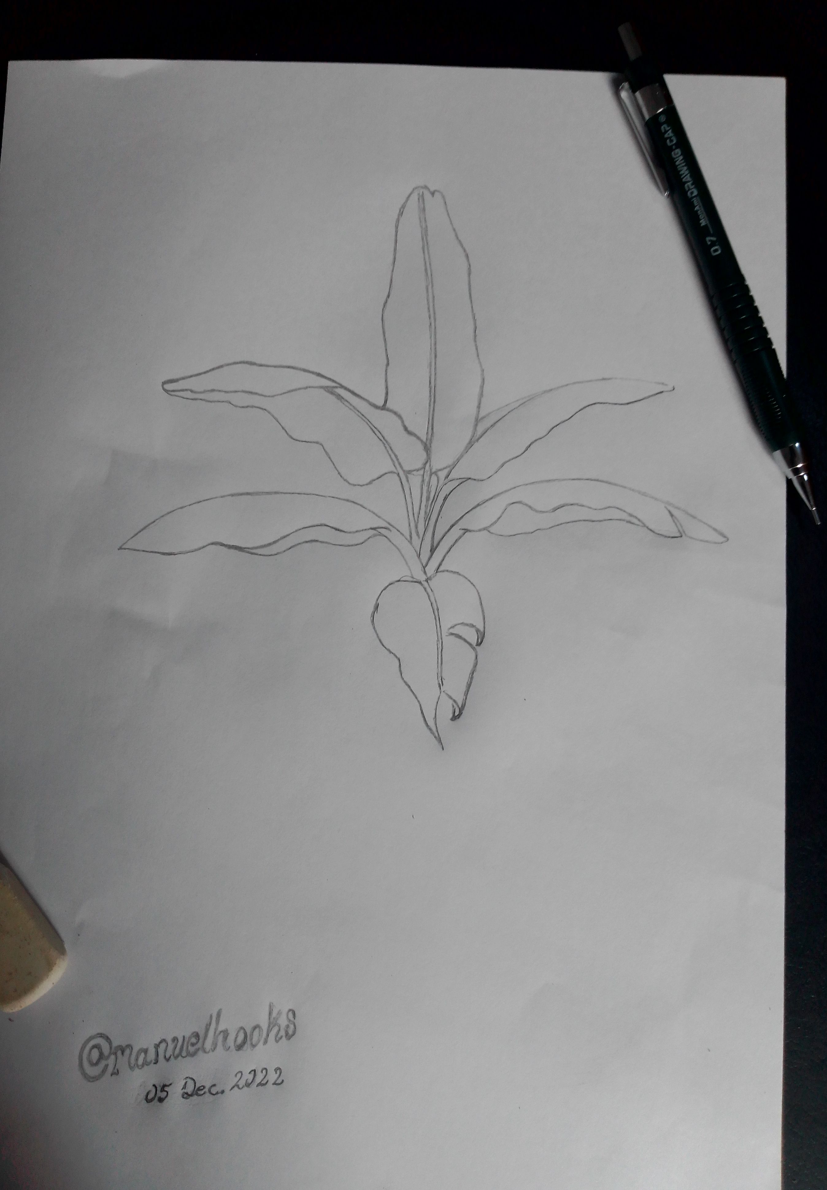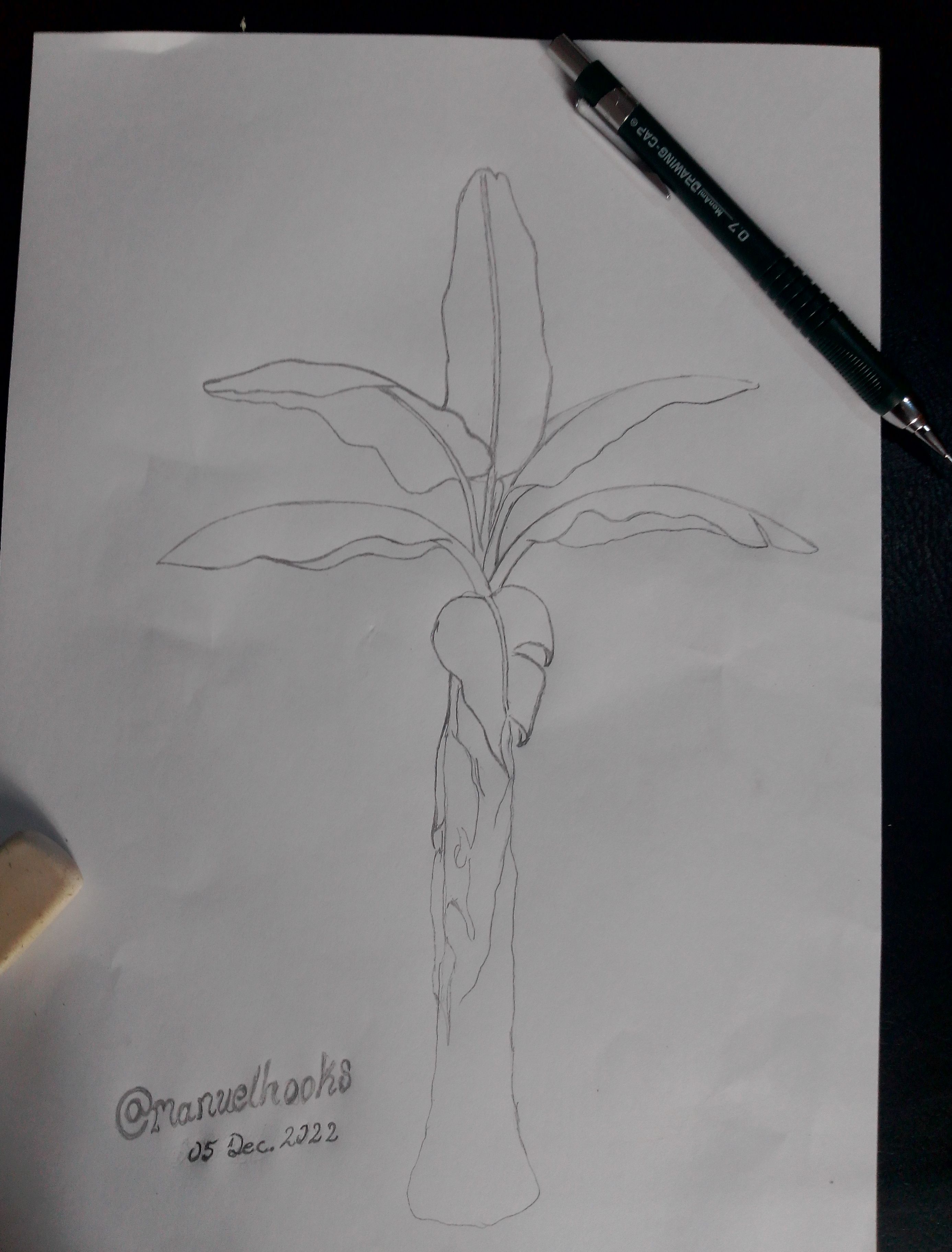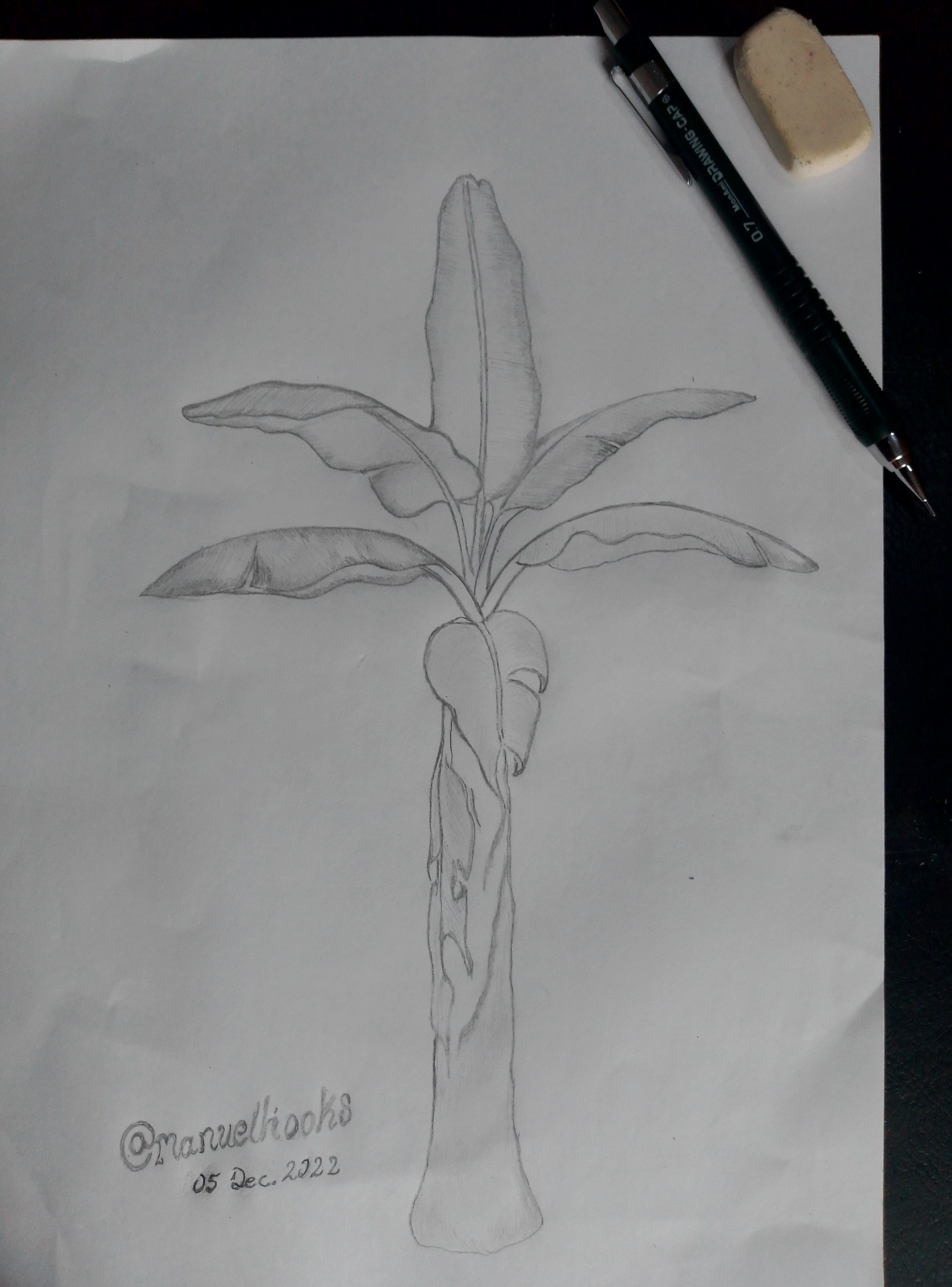 Ha realizado un buen trabajo amigo @manuelhooks, el dibujo de árboles es muy difícil y el plátano no es la excepción, tiene mucha creatividad le quedó idéntico.