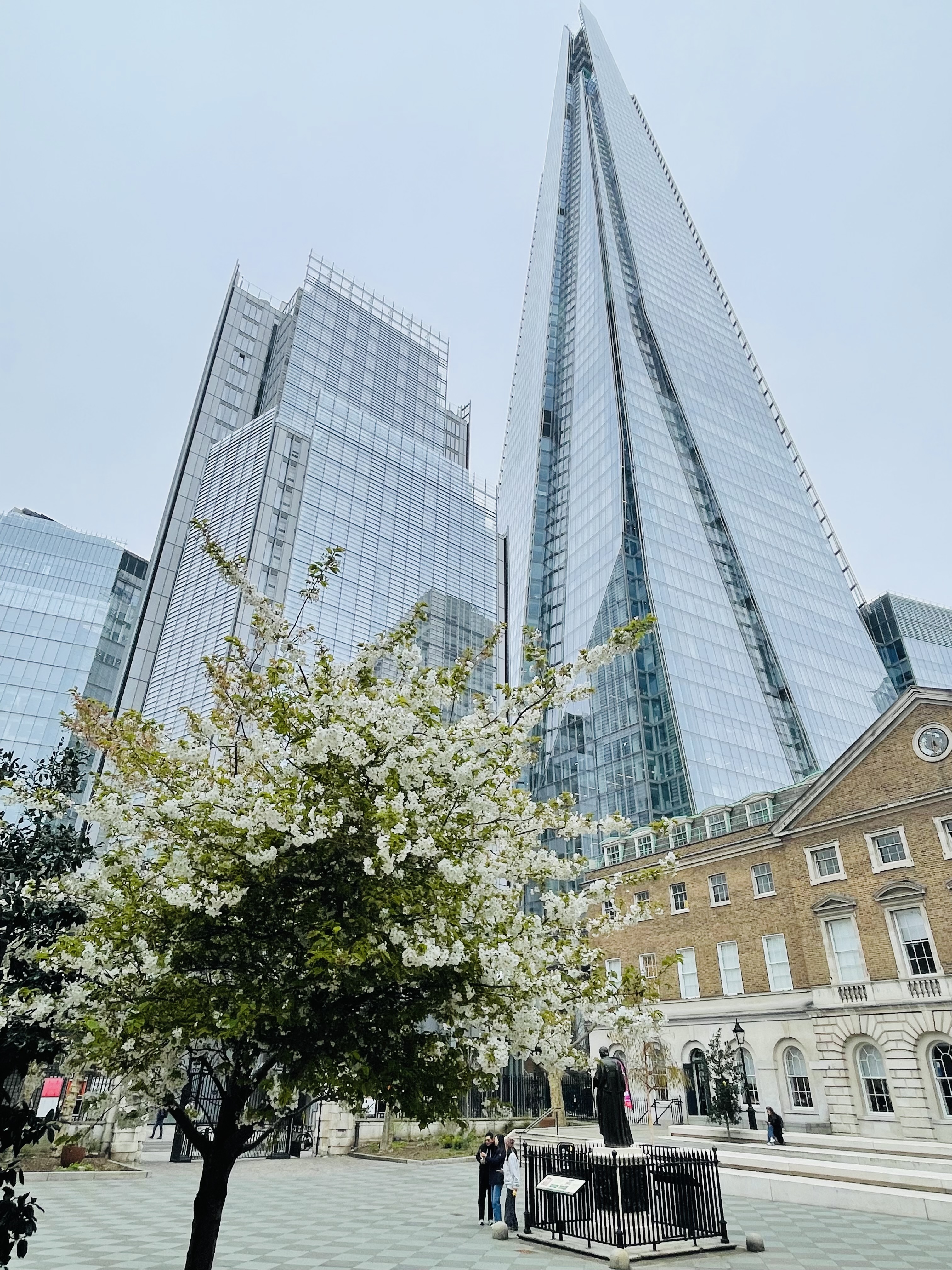 Lovely glimpse of London—those cherry blossoms with The Shard look stunning, and the magpie shot is such a unique touch! 🌸📸