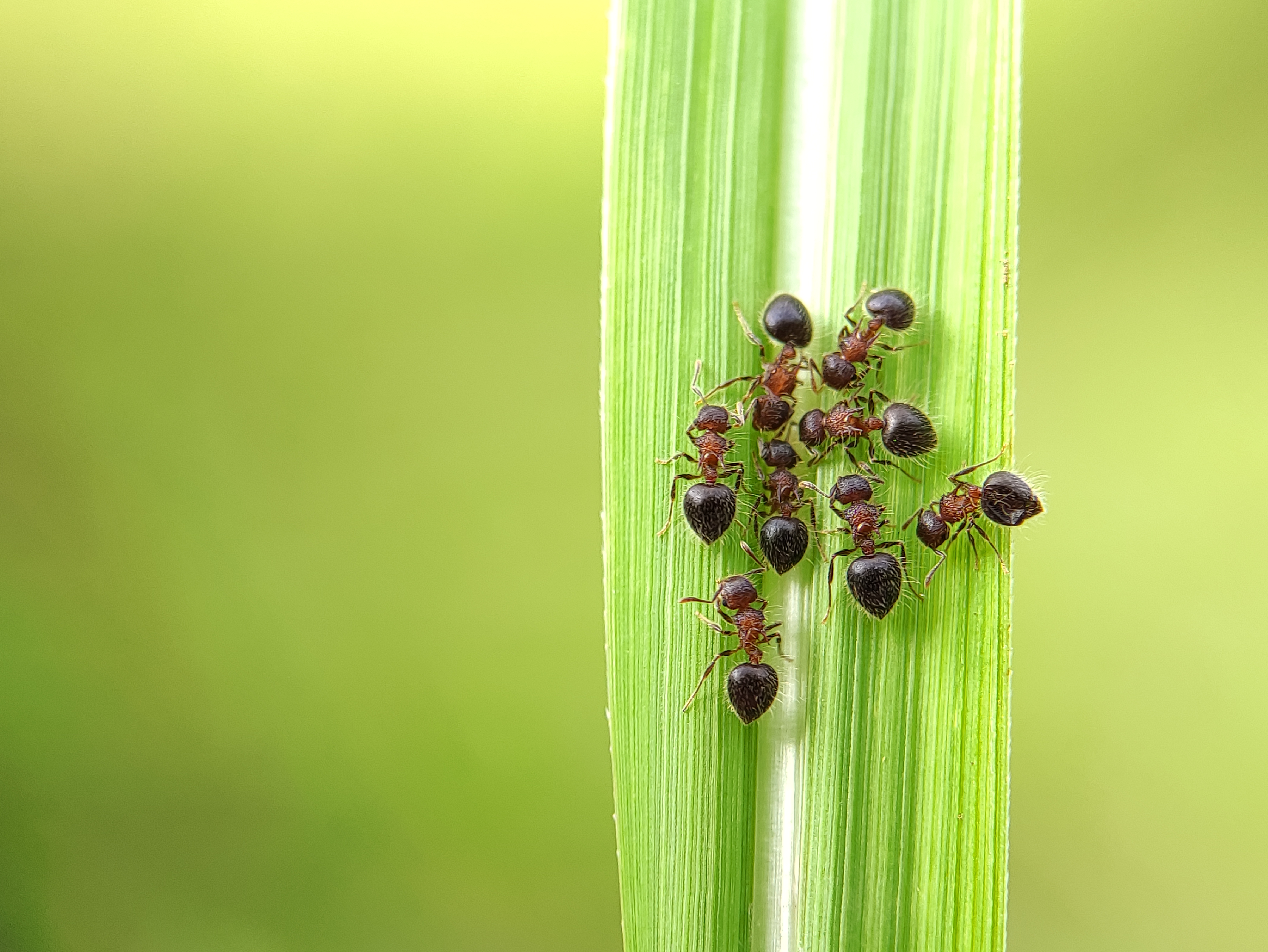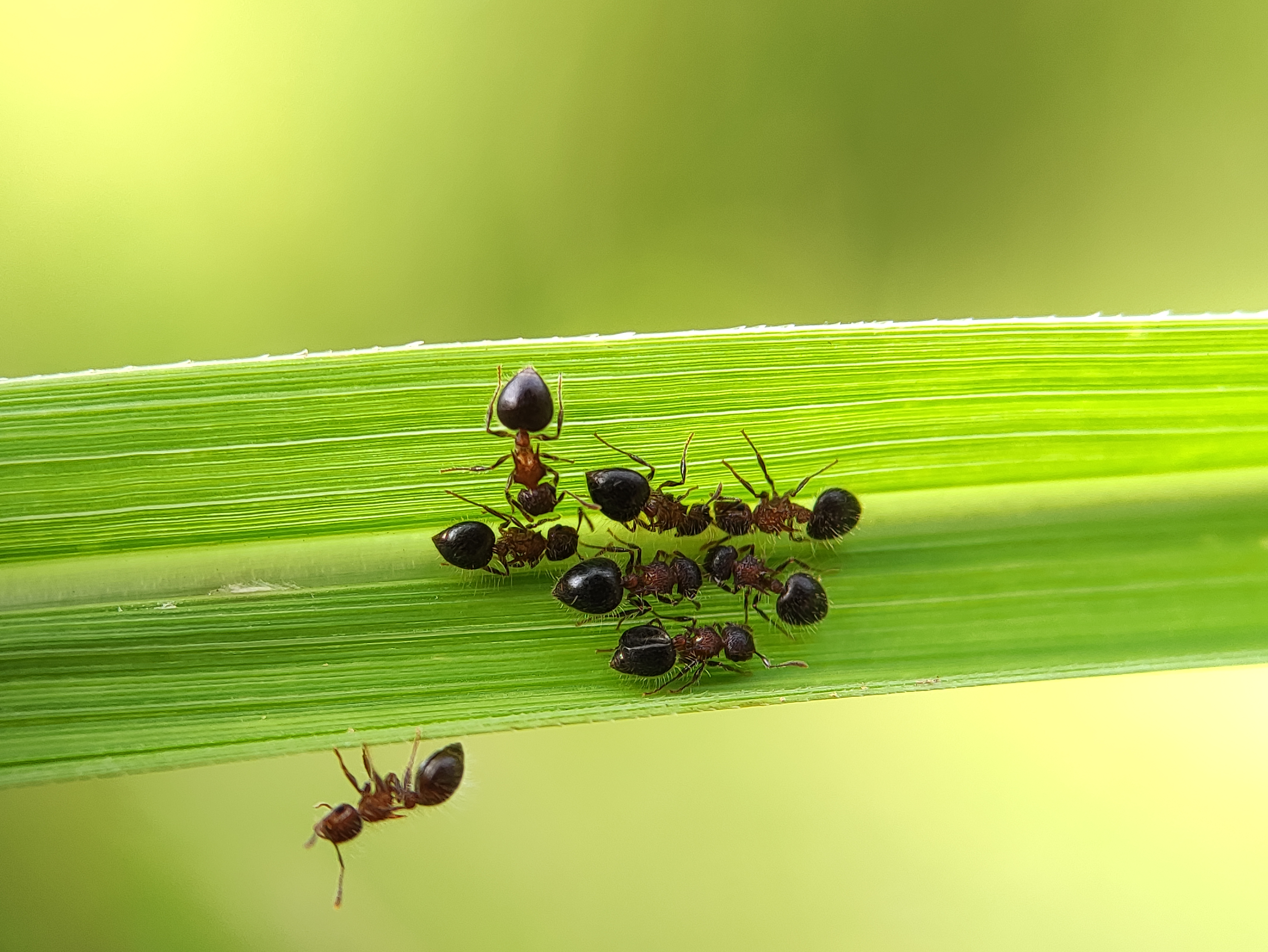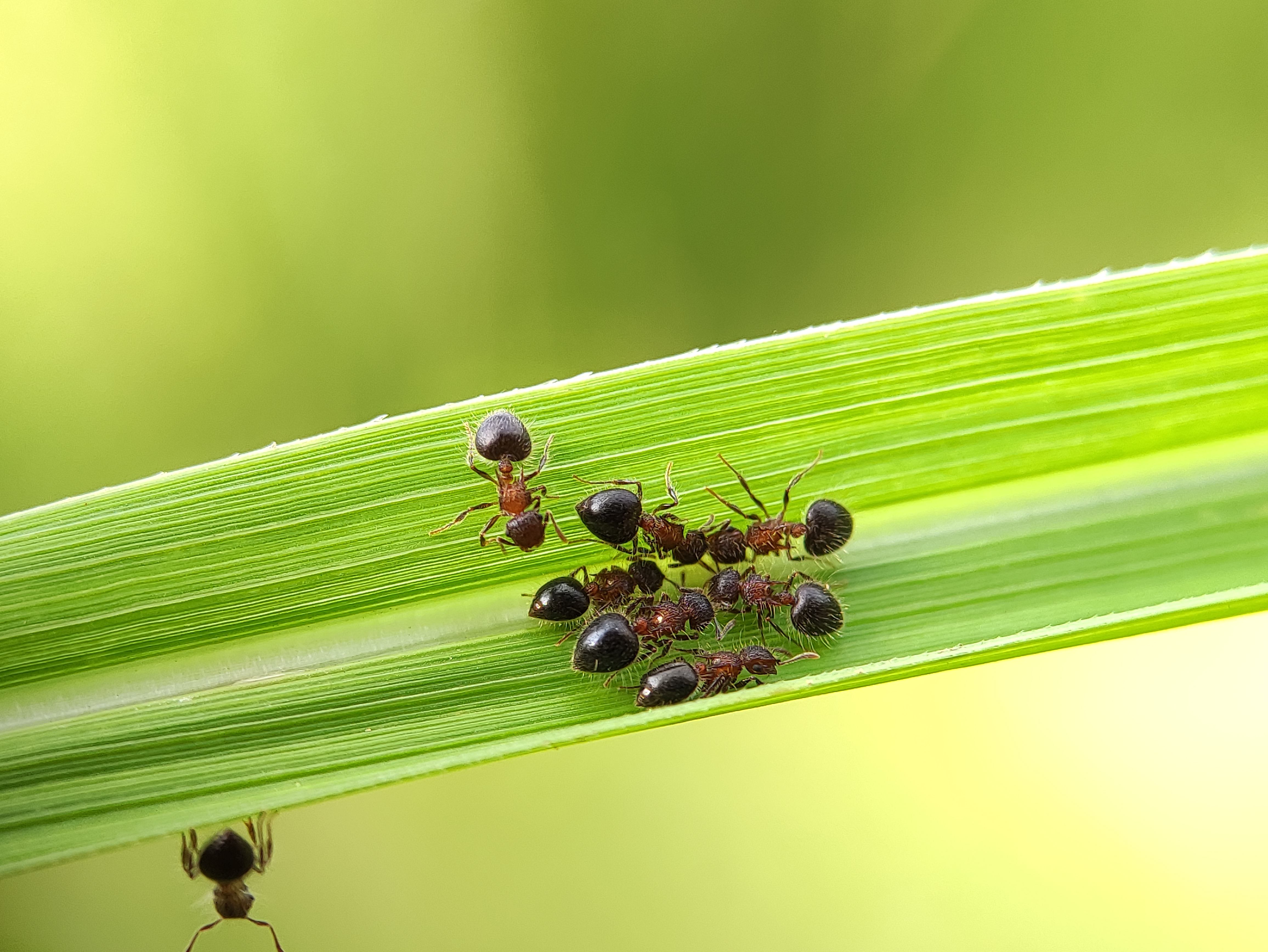 Macro Photography - A group of ants are on the grass
