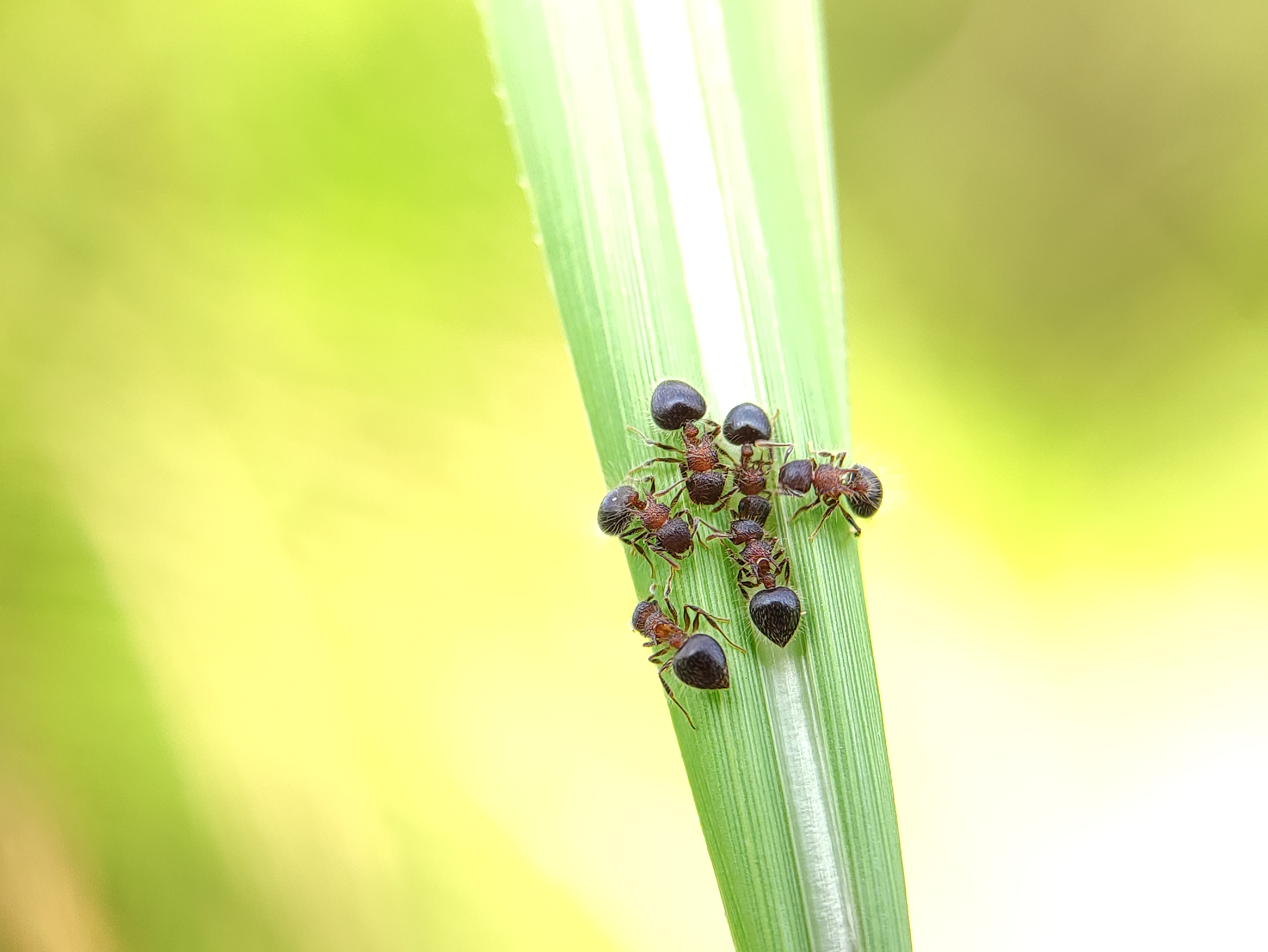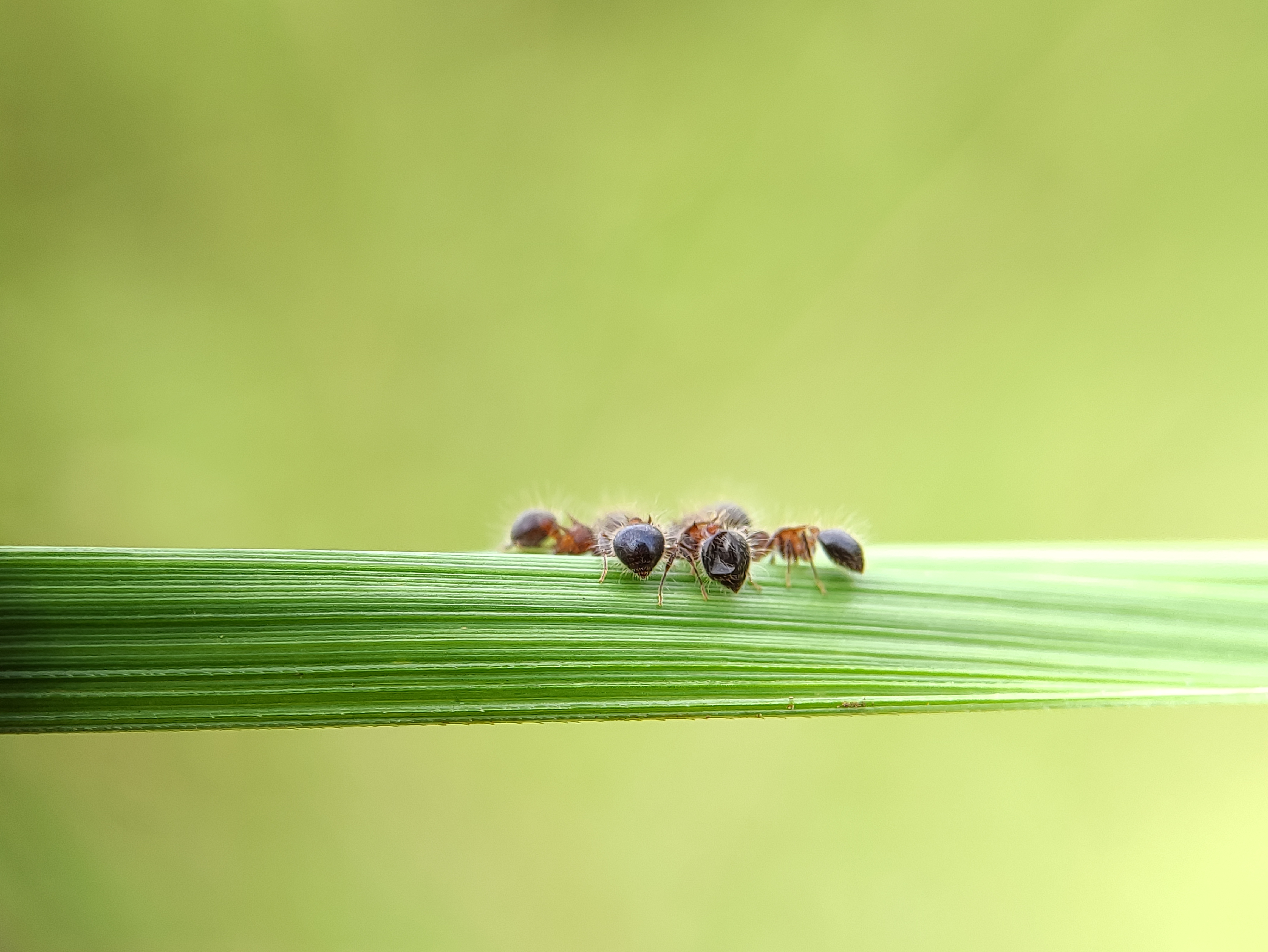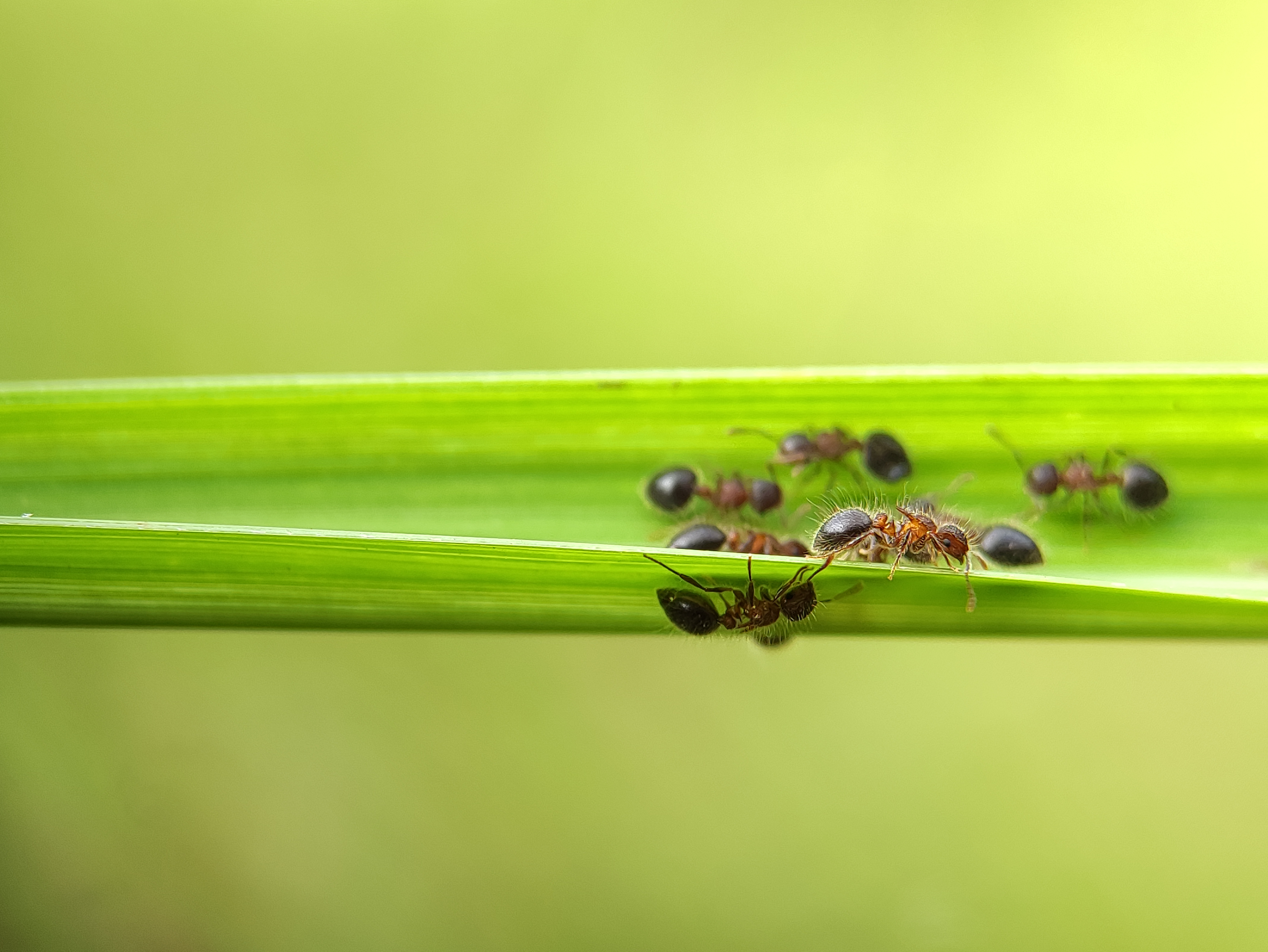 Macro Photography - A group of ants are on the grass