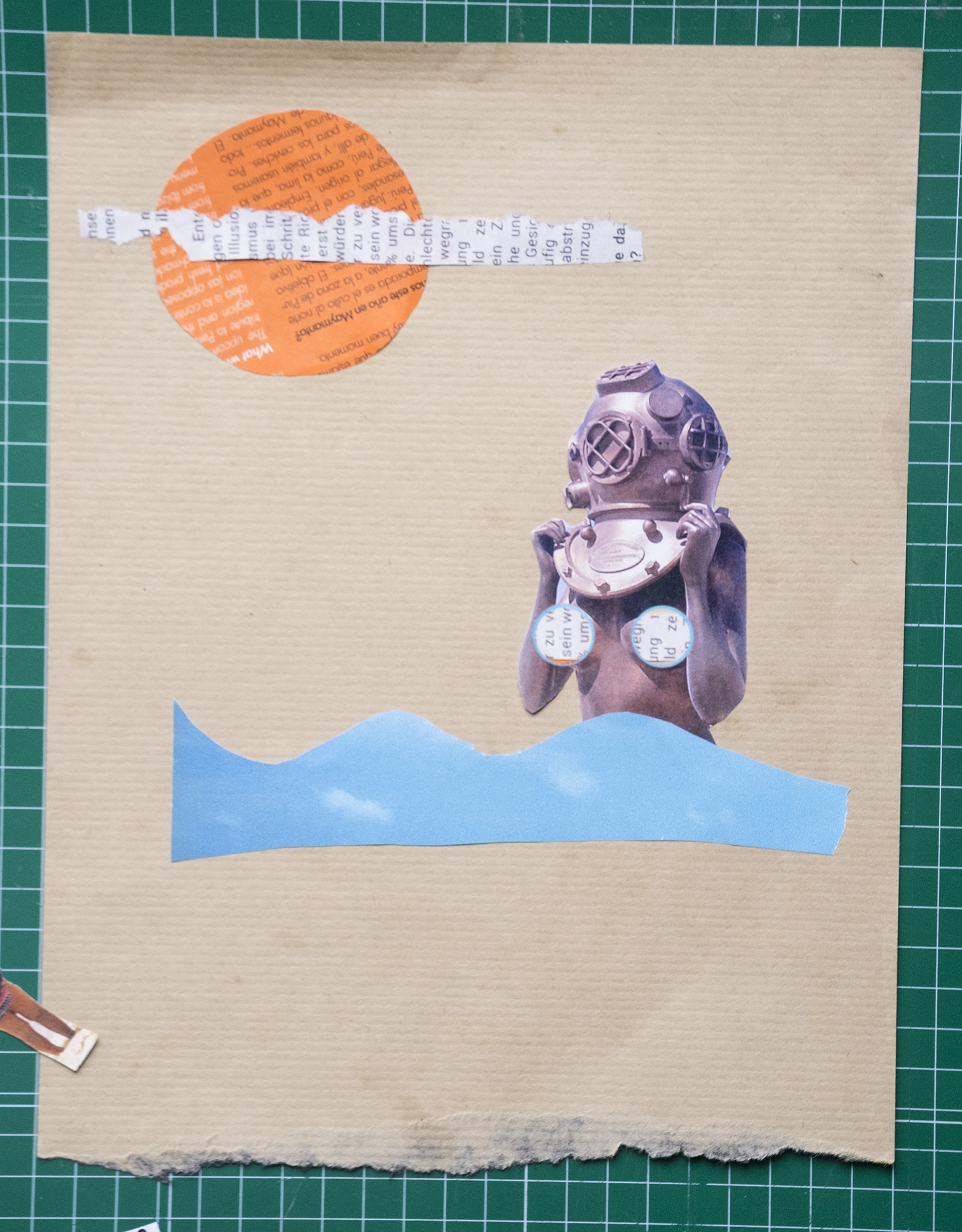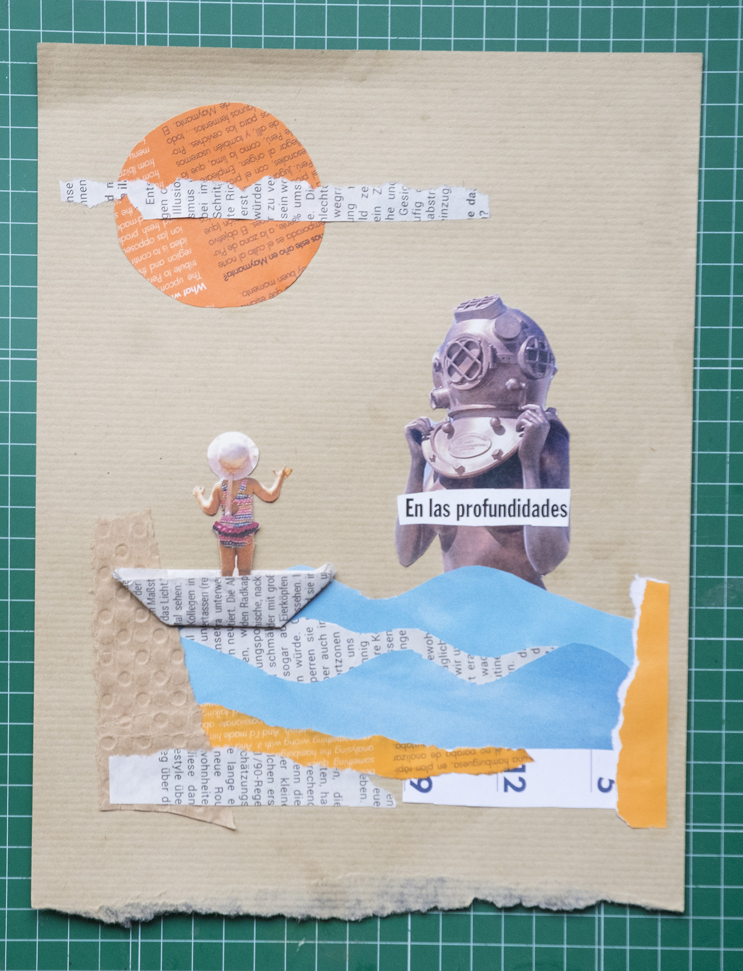 I link you several tutorials that can inspire you, as well as two examples of seafaring collages, one digital and one analogical, this one made by me.