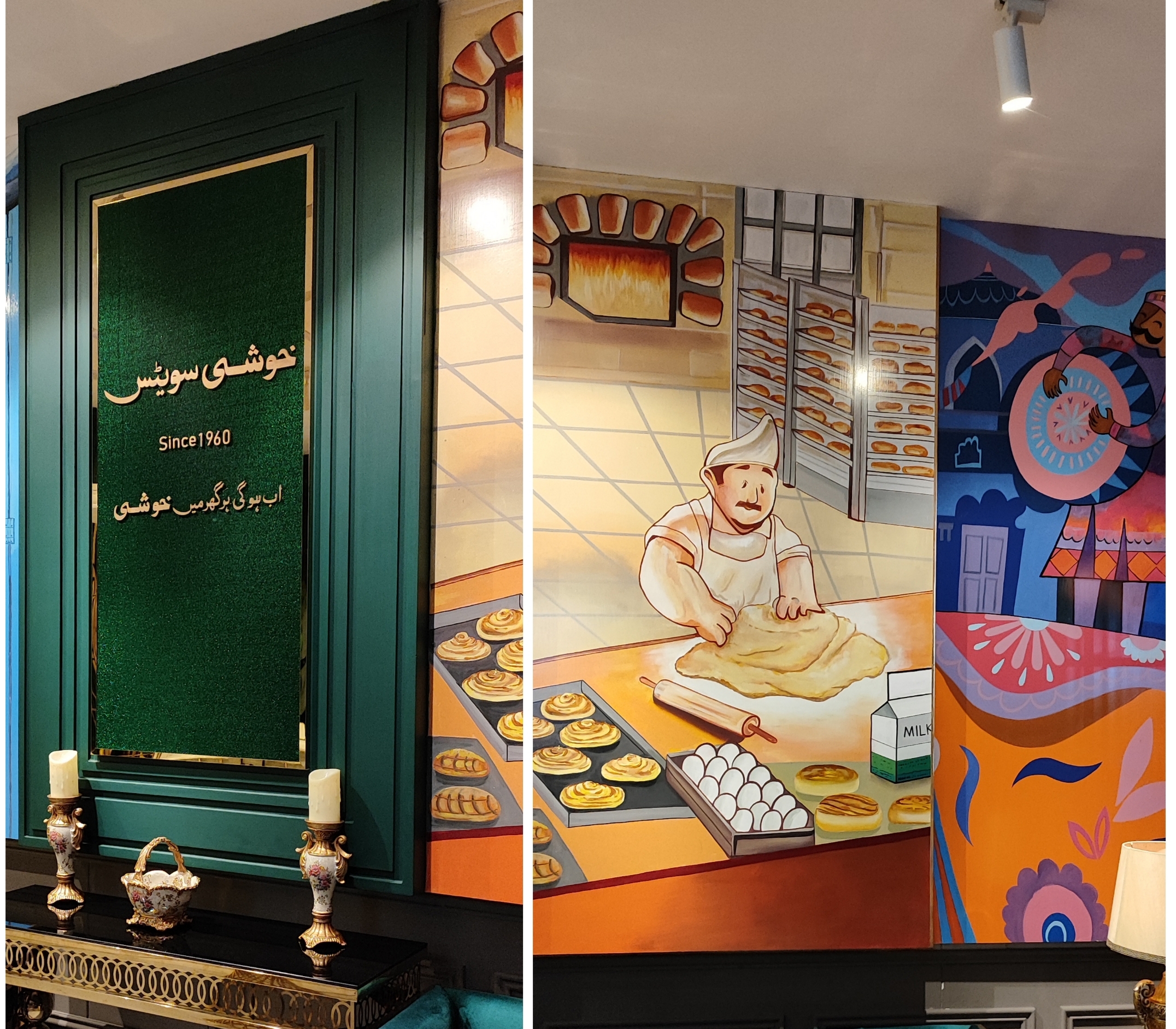 The ambience of the shop was top-notch. In Mian Channu, it all began from a humble corner (tharra )at T Chowk, near the bus stand. From there, it went through various stages of evolution — eventually becoming a proper sweet shop. But here in Lahore? It's a completely different vibe altogether.it has such a cozy setup. The wall murals, especially the one showing the sweet maker (halwai) at work, added so much charm. I absolutely loved the overall atmosphere!