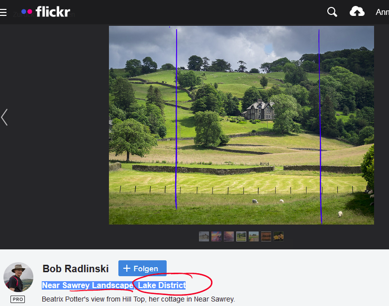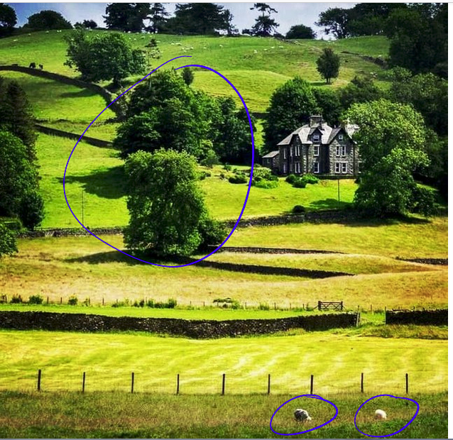 The Photo obviously cropped but we can see the same clouds, shadows from the trees and those two sheep in front that are grazing.