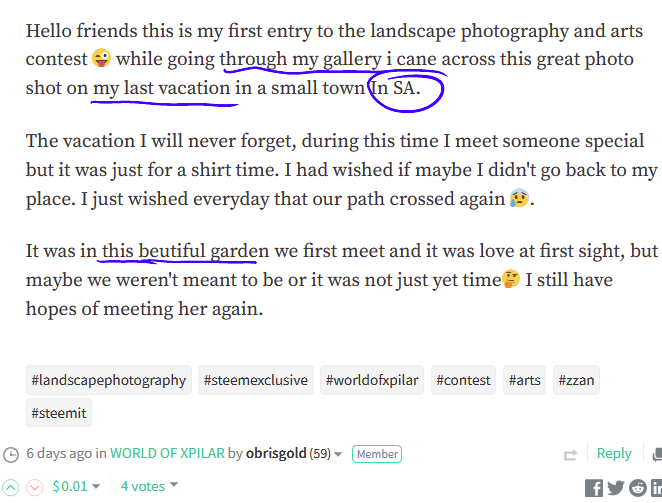 Nevertheless, we wanted to make you aware about that and also to ask @steemcurator01, @belenguerra and @fendits to draw the attention of the communities to check the posts of the user to see if there are any more such case.