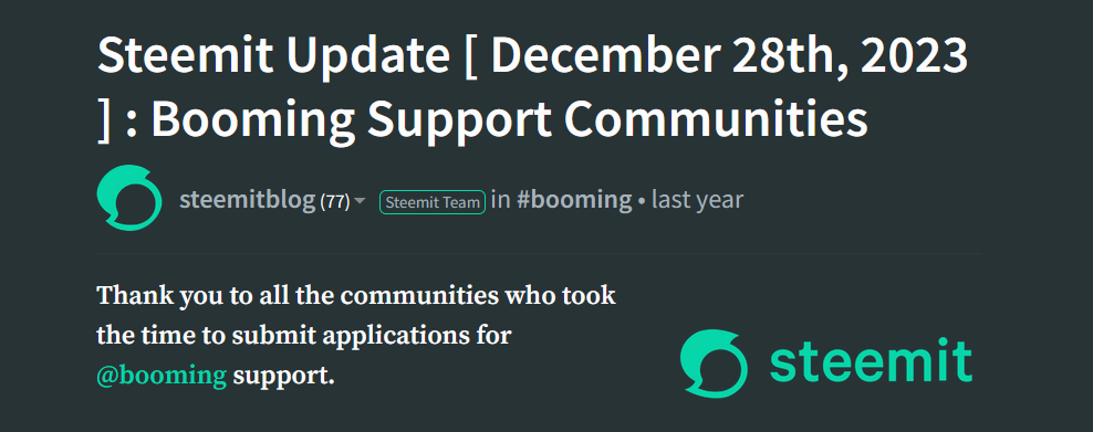 That is why I wanted to ask the Steemit Team to do a new call for Application for Booming Support because there are many more communities and they all wanted to be able to have a chance to be lucky one and have Booming Support too.