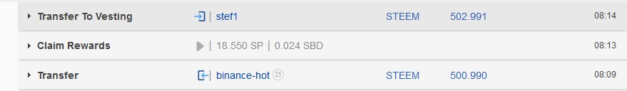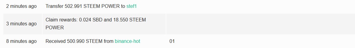 - We have transferred Steem from exchange to @stef1 and then Pwered it up: