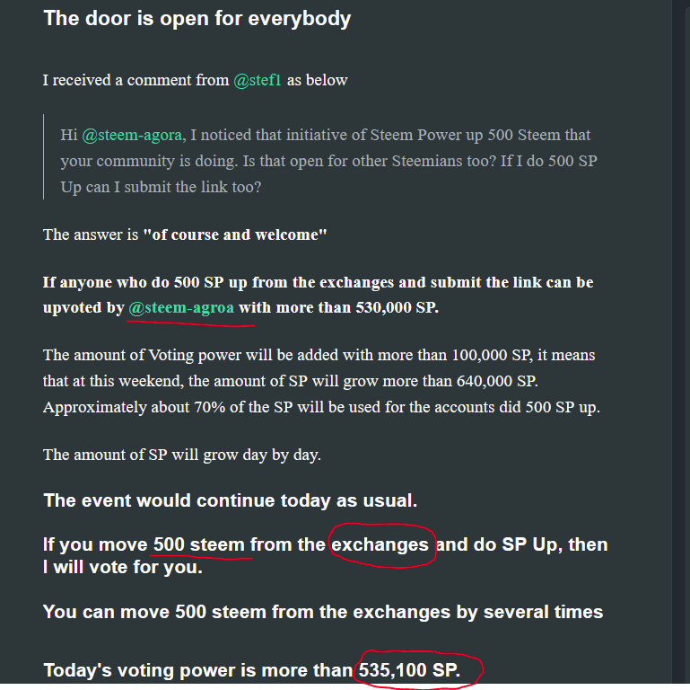 On of our old friend Steem Witness @steem-agora who is one of the supporter of @art-venture project but also he is the one who actively encourages Korean Community to invest in Steem and Power up. You might noticed that many accounts there have high Steem Power and the reason behind is they have support for Powering up