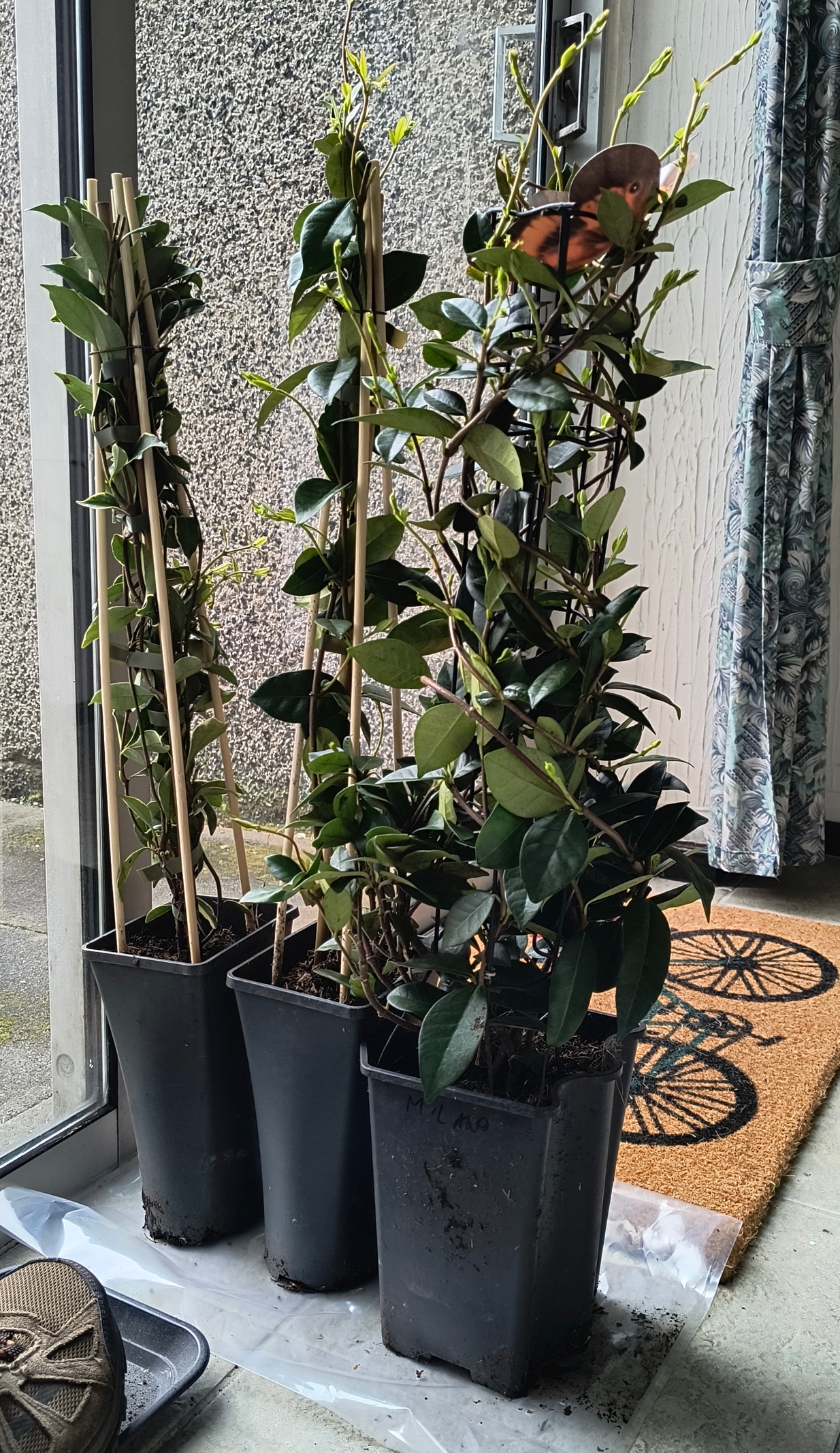 It is time to bring more new plants in our garden, we are trying to cover the grey boring walls. Therefore, there are three climbing plants, we decided to buy already a bit stronger and bigger plants so that they can grow faster.