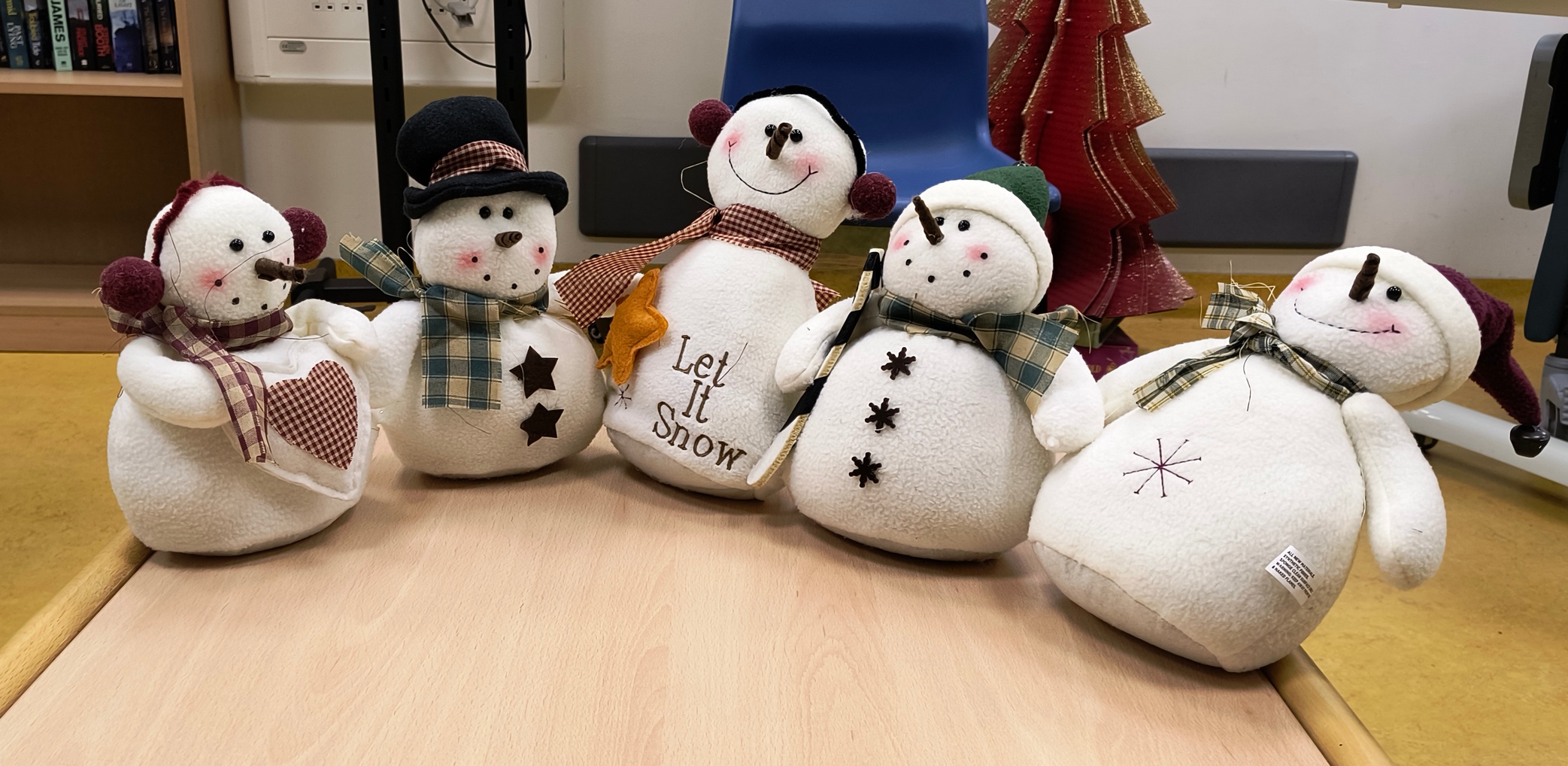 When I see the decoration about Christmas there should be some snowmen, from my memory about old time and my childhood, Christmas should be white and there should be snow that also means snowmen. I always build a snowman when there is first snow and there is much snow. That is why when I came to work and saw these soft toys in form of snowmen with the title “Let is snow” I immediately loved it.
