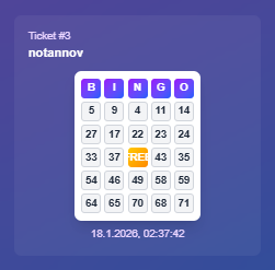 | Winner 1 | 1 Bingo Ticket |