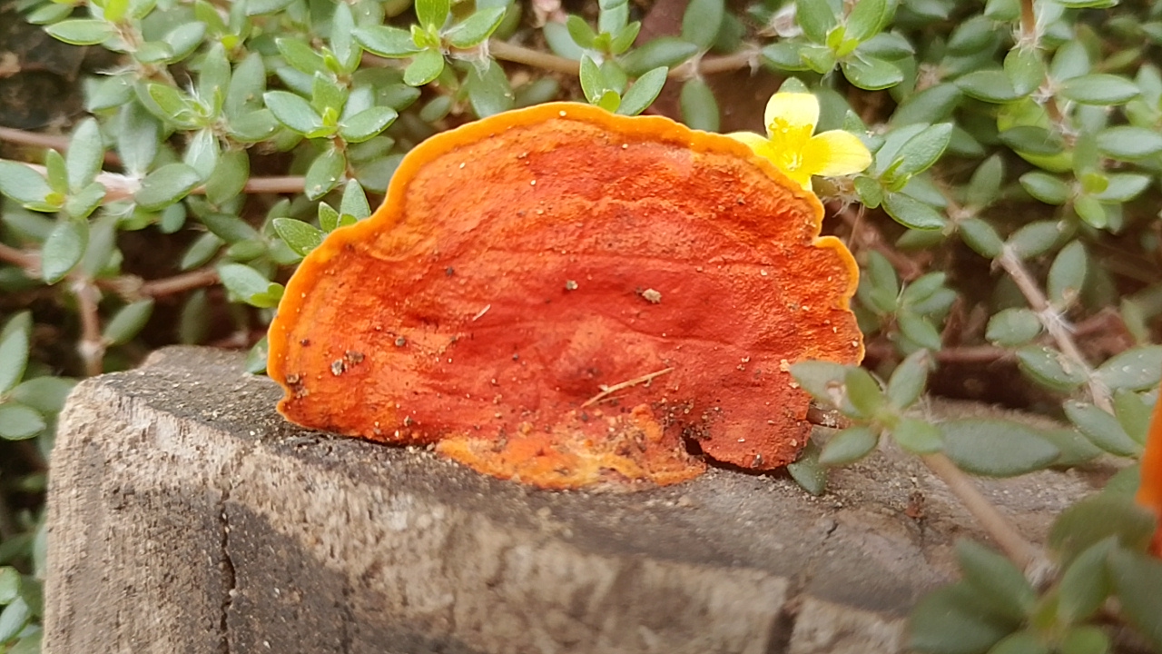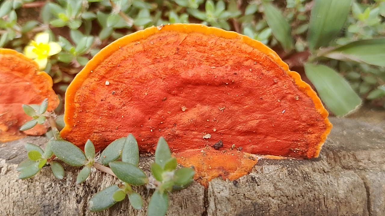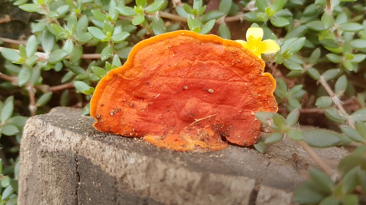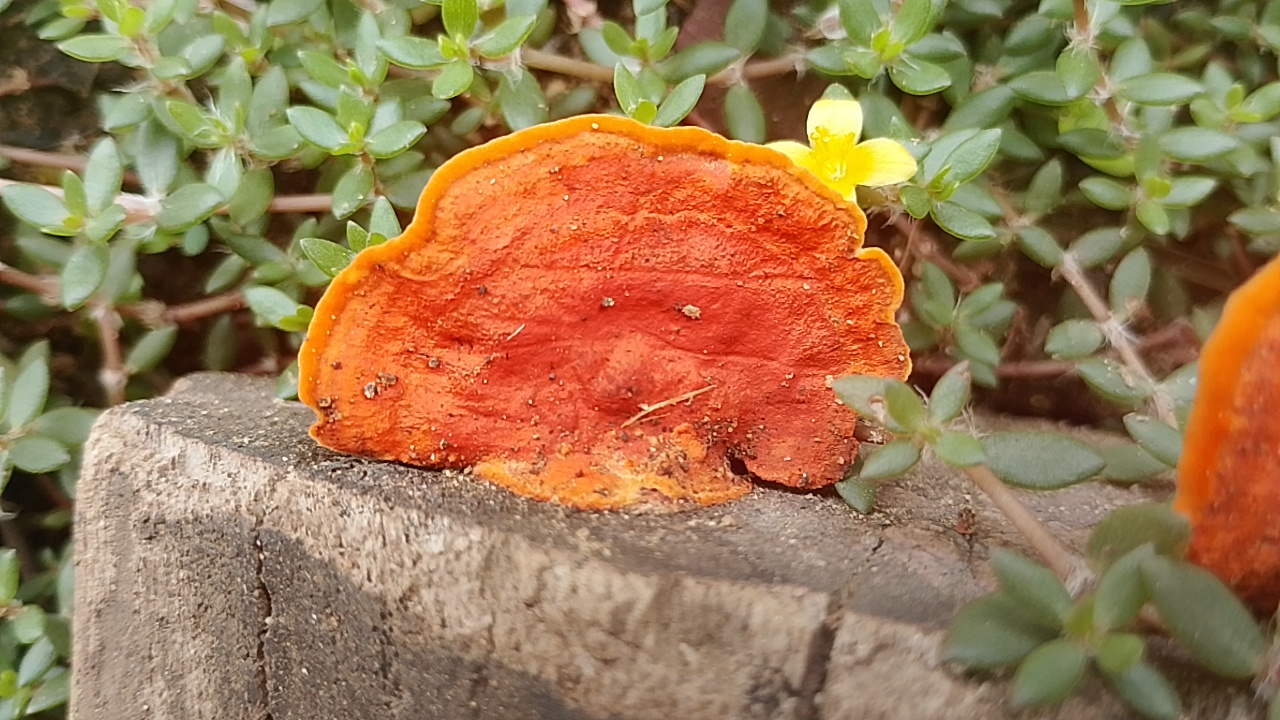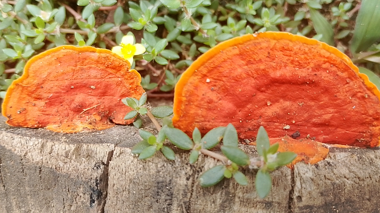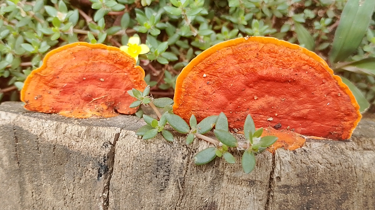 Today I will show you from the perspective of beauty only, I found this orange mushroom to be growing on the end of the wood that has dried up,