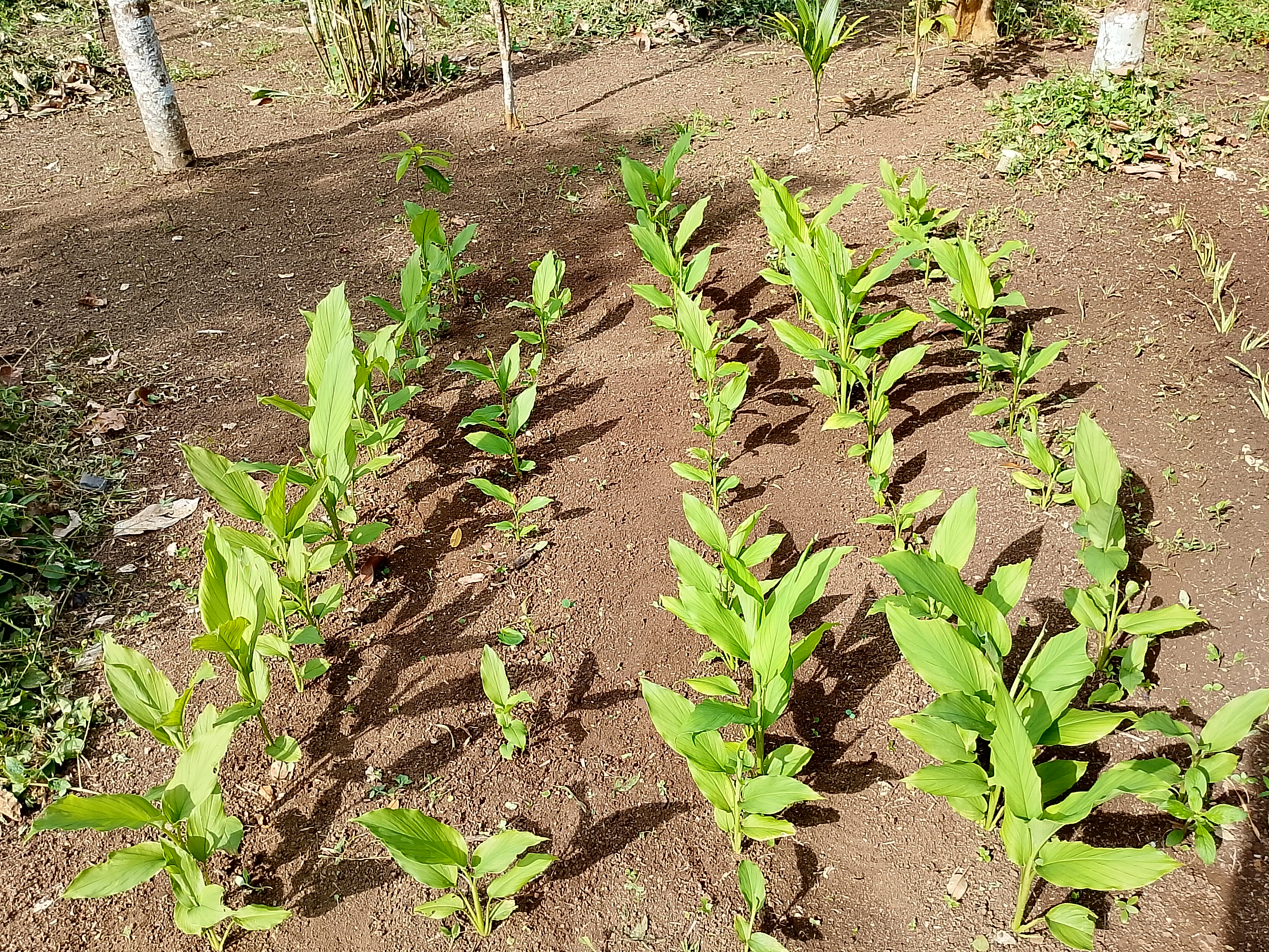 Below, Steem users who continue to support my gardening posts can see that after I cleared the garden, all the turmeric plants have started to grow and are entering the development stage of other turmeric plants in the soil. The image below shows me before clearing this turmeric area.