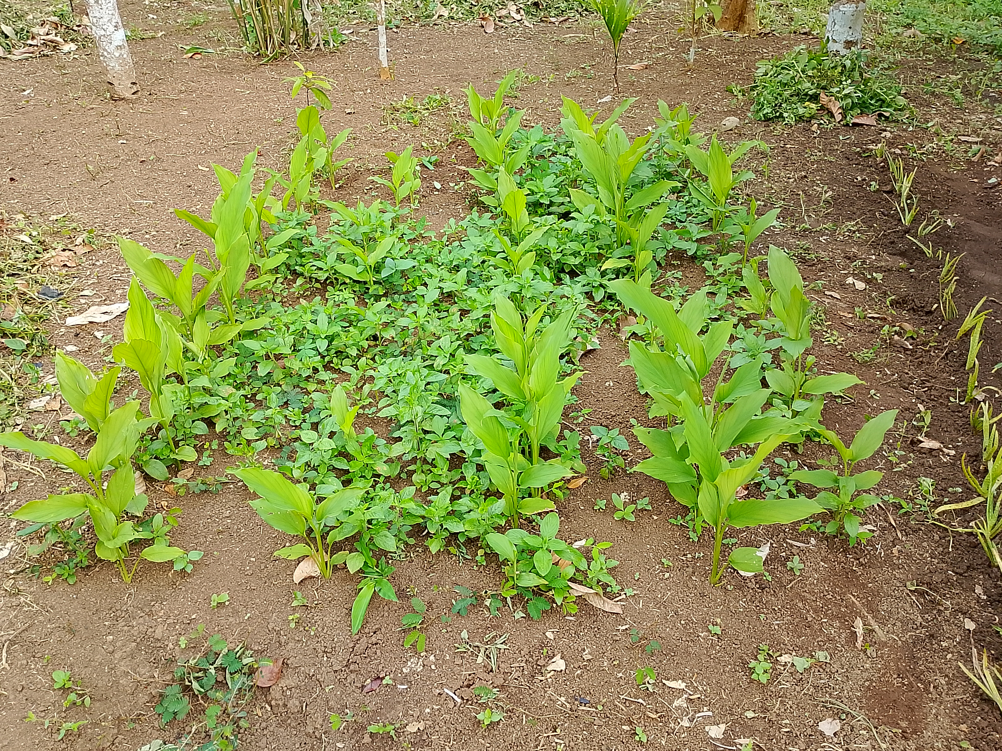 The image below shows after I cleared the turmeric area. In clearing the turmeric area, I couldn't use a machete or hoe for fear of hitting the turmeric seedlings growing or in their growth stage. So, as usual, I cleared it by hand, pulling out each and every weed in the turmeric area I planted.